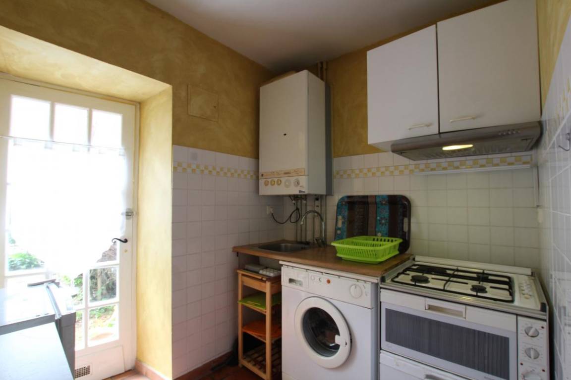 Erdgeschoss: Kleiner Küchenbereich (Mikrowelle, Kühlplatte, kombinierter Minibackofen und Geschirrspüler für 6 Gedecke, Gasherd, Waschmaschine).