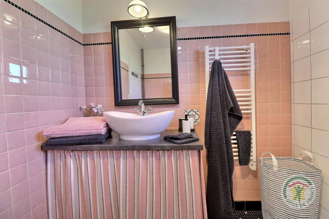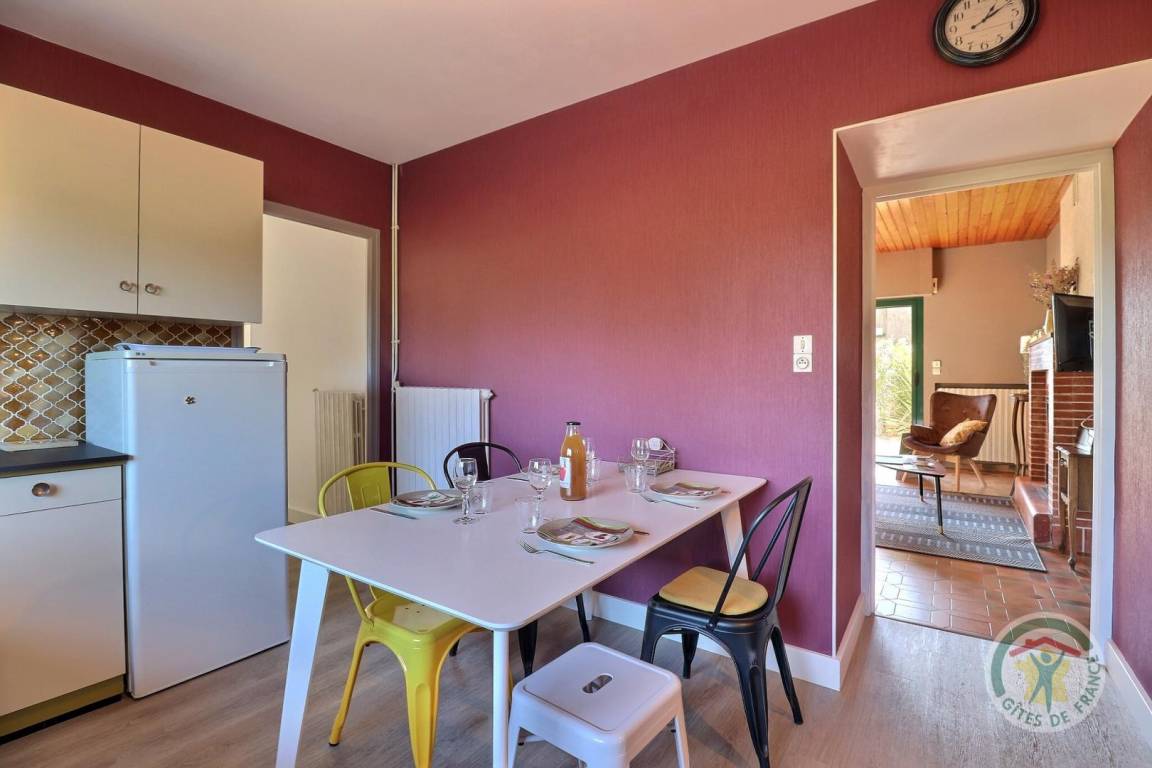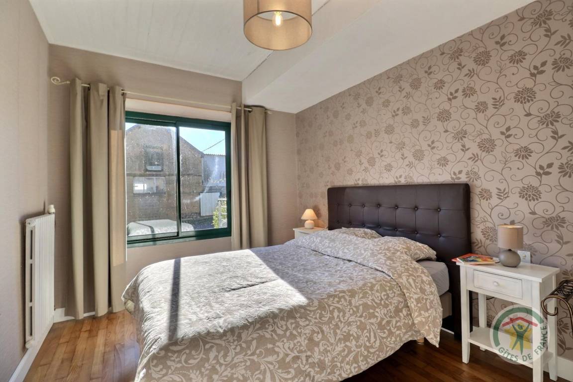 Mit 3 Zugang Schritten vom Hof , der von den angrenzenden Eigentümern geteilt: einstöckigen Miete mit einem Wohnzimmer (Dekokamin), eine Küche mit Essbereich, einem Schlafzimmer mit einem 160x200 Bett, ein Schlafzimmer mit einem 140X190 Bett, ein Bad und einem separates WC. Parken auf dem Grundstück.