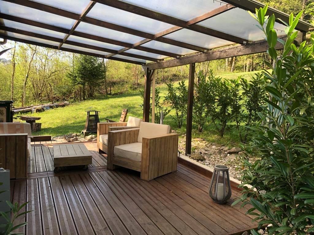 Aber bevor Sie eintreten, hören Sie genau zu. Der Fluss am Fuße des Ferienhauses lädt zum Entspannen und Kraft tanken ein. Dieses Ferienhaus bietet Ihnen einen privaten Swimmingpool, eine private Sauna in einem kleinen Haus in der Nähe des Cottages und vor allem den zusätzlichen Vorteil der Abgeschiedenheit.