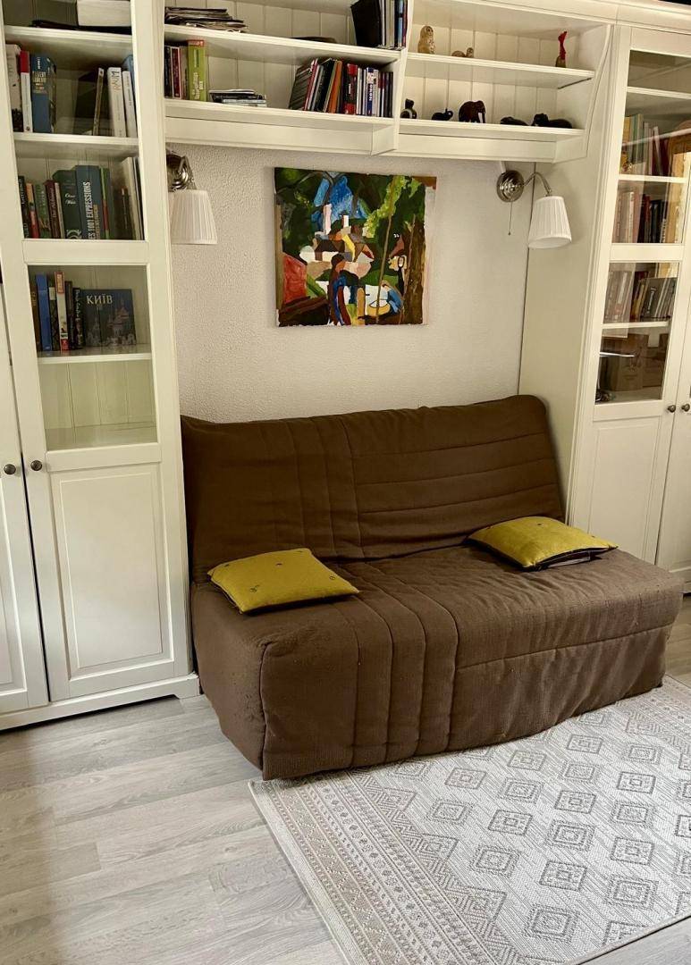 Erdgeschoss: Einbauküche mit angeschlossenem Wohnzimmer und Pelletofen. Ein Büro-Schlafzimmer mit Schlafsofa für zwei Personen. Duschraum mit WC.