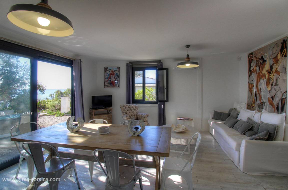 „Tout est parfait ! L’intérieur est magnifique et de très bon goût pour la déco. Très belle terrasse avec vue sur la mer et pied dans l’eau. Très bien agencé il y a tout ce qu’il faut (vaisselle, grand frigo..,) sanitaire propre et propriétaire très gentille et souriante… je recommande fortement“