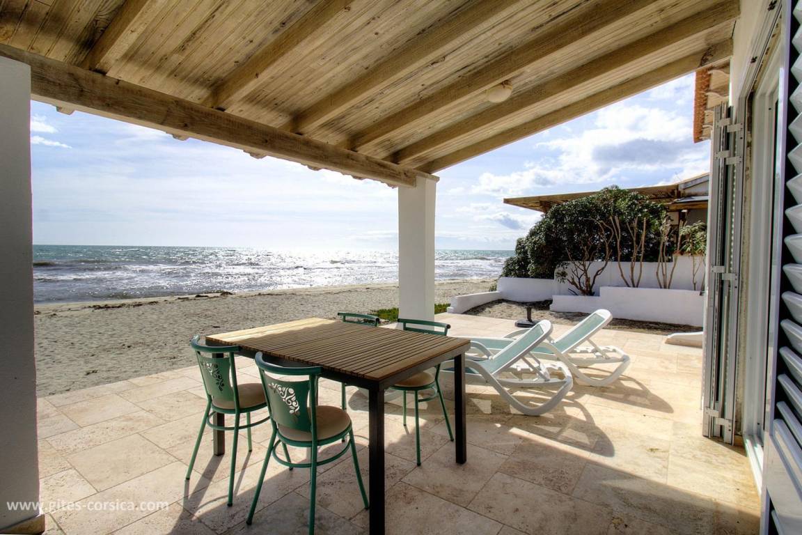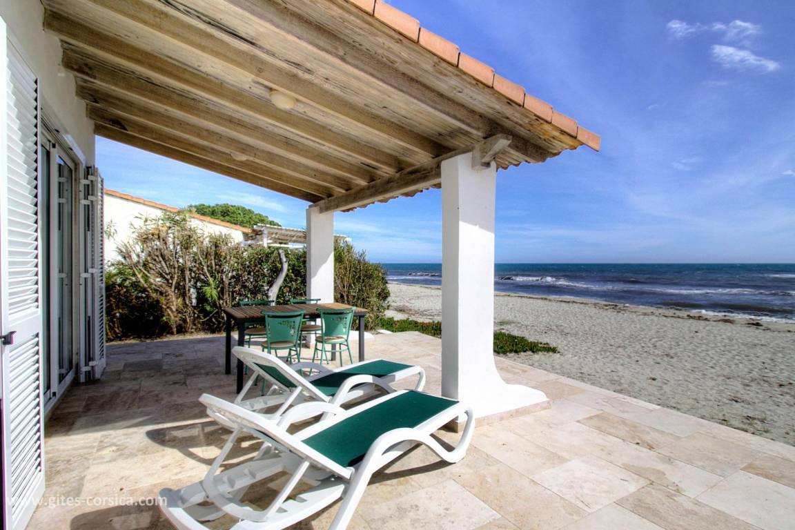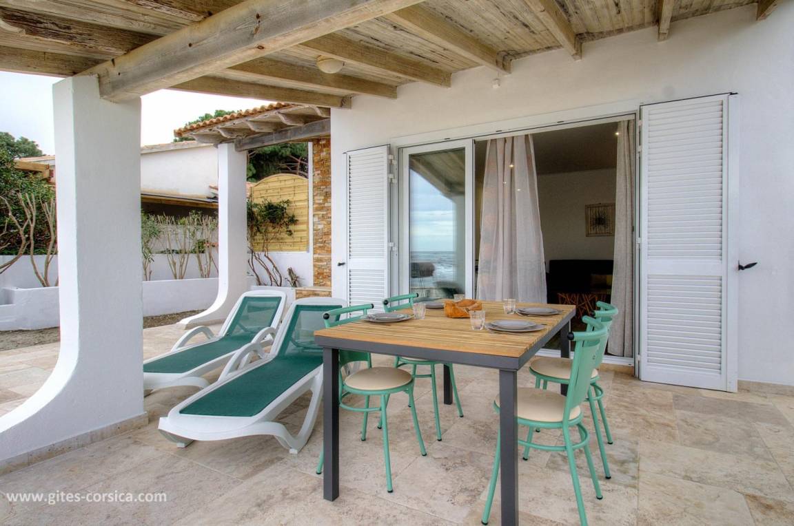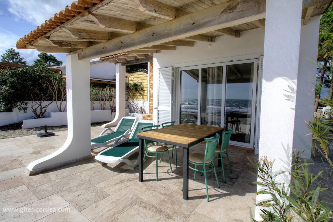 - Halbüberdachte Terrasse von 42 m² mit Blick auf das Meer (öffentlicher Strand, Urlauber können an der Terrasse vorbeigehen).