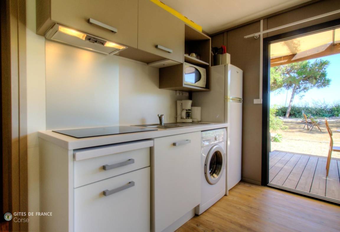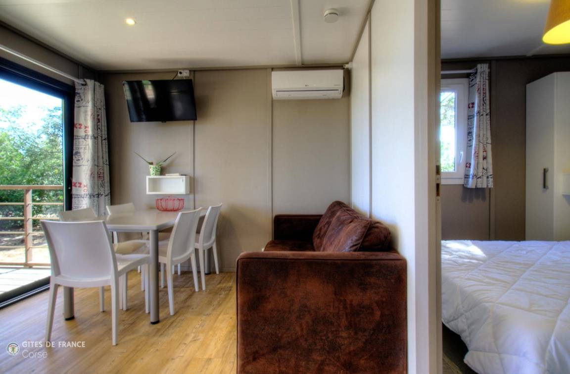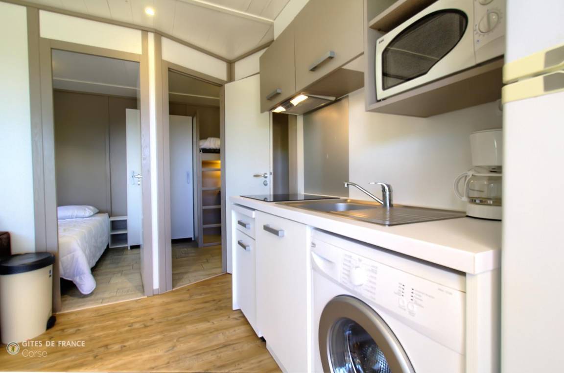 - 1 Schlafzimmer von 5,3 m² mit 2 Etagenbetten von 80 x 190 cm (das obere Bett ist nicht für Kinder unter 6 Jahren geeignet)