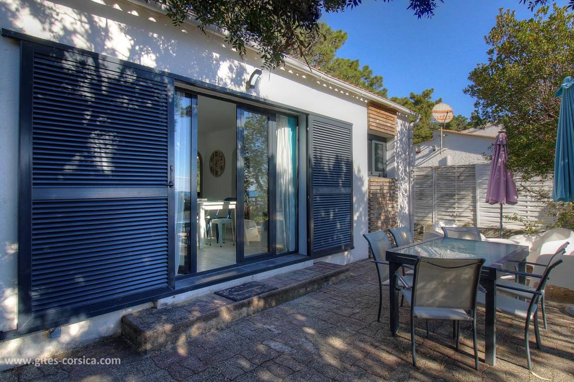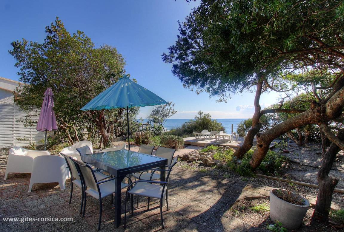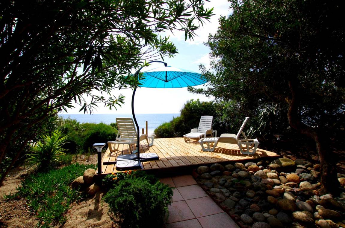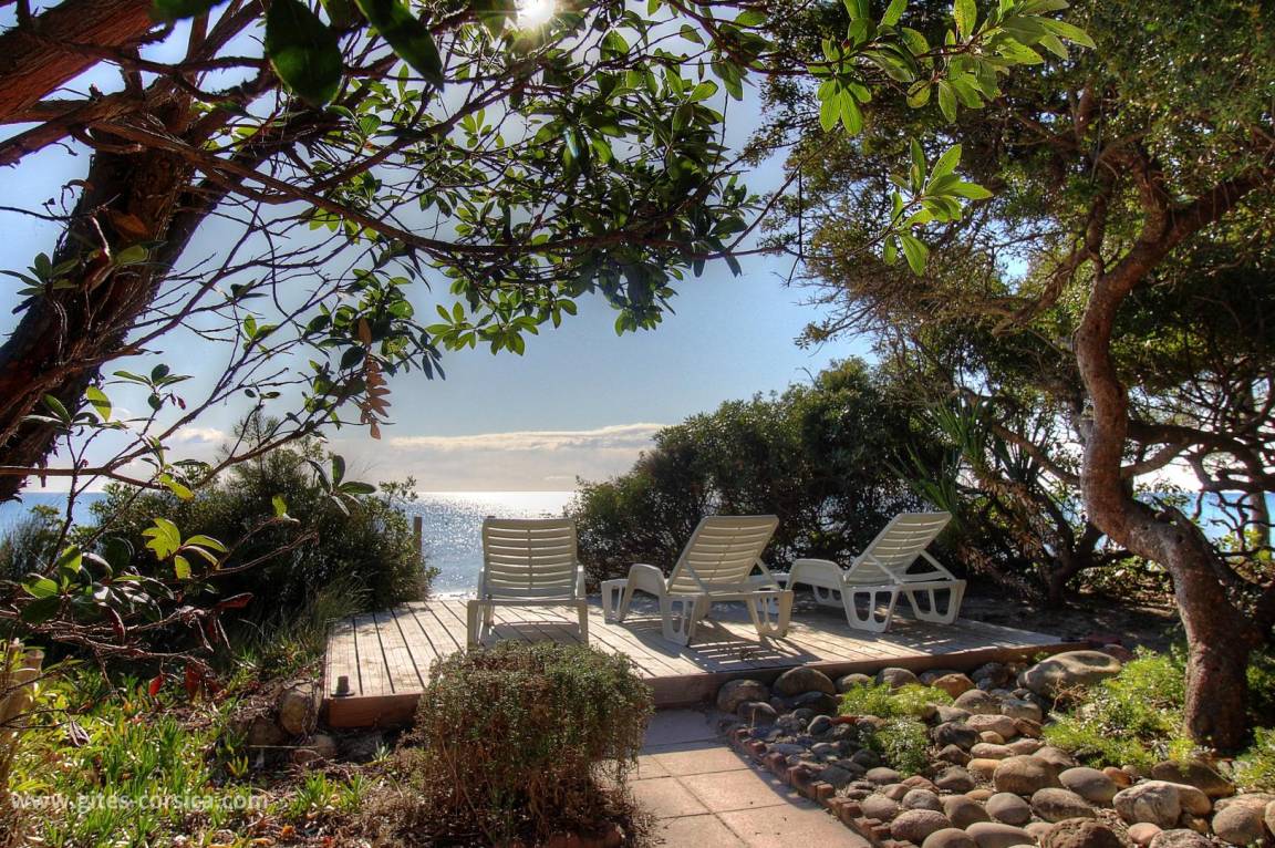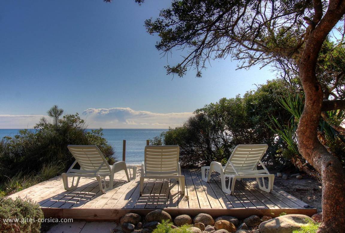 - Holzterrasse von 18 qm mit Meerblick mit 3 Liegestühle und privatem Zugang zum Strand
