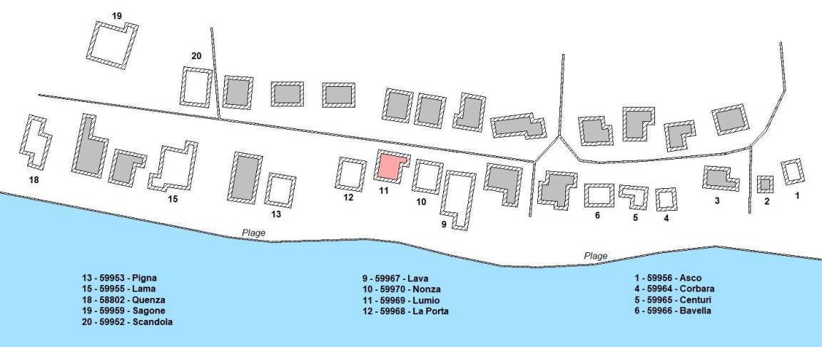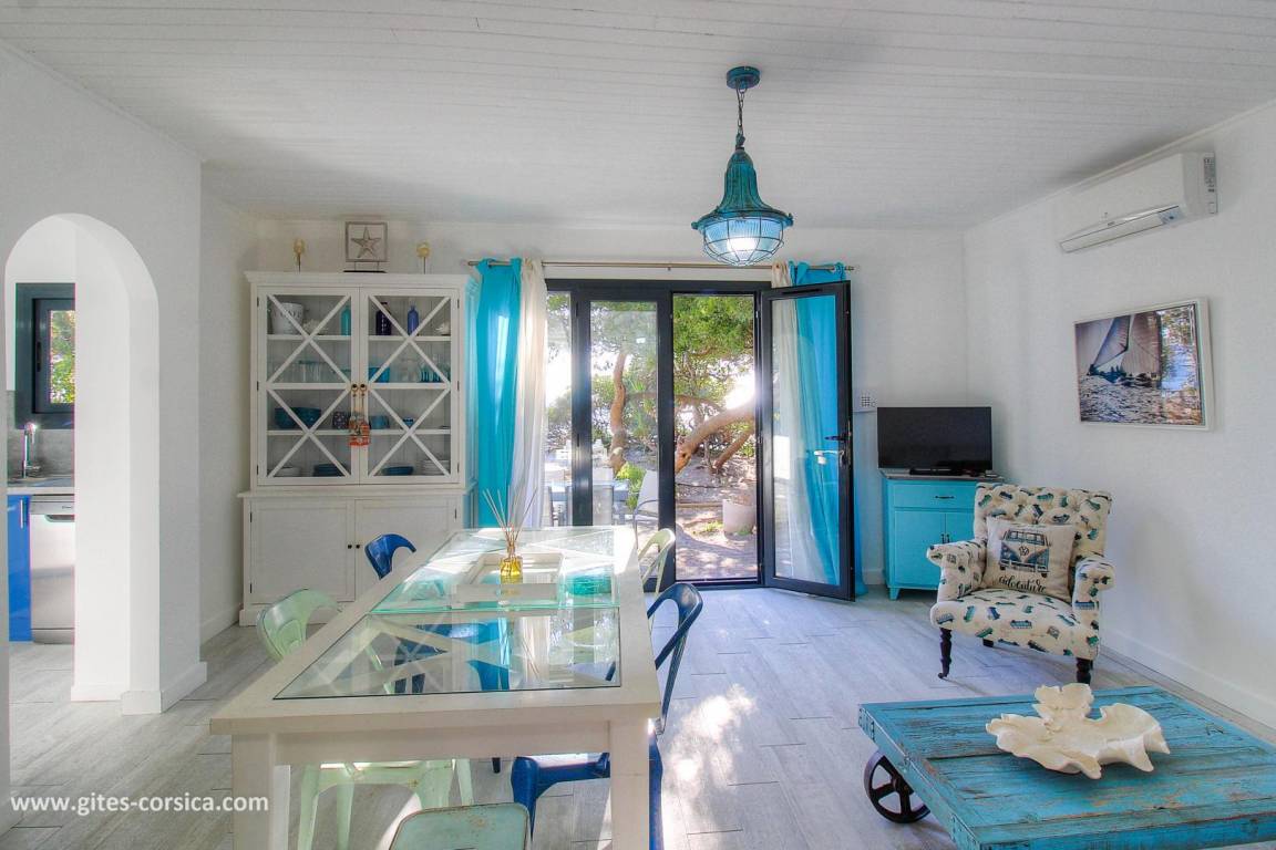 Direkt am Strand gelegenes, unabhängiges Haus von 51 qm in einem Anwesen mit anderen Vermietungen. Es setzt sich wie folgt zusammen: