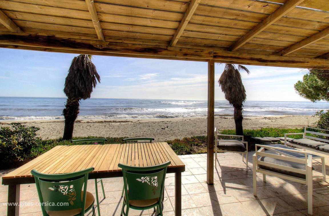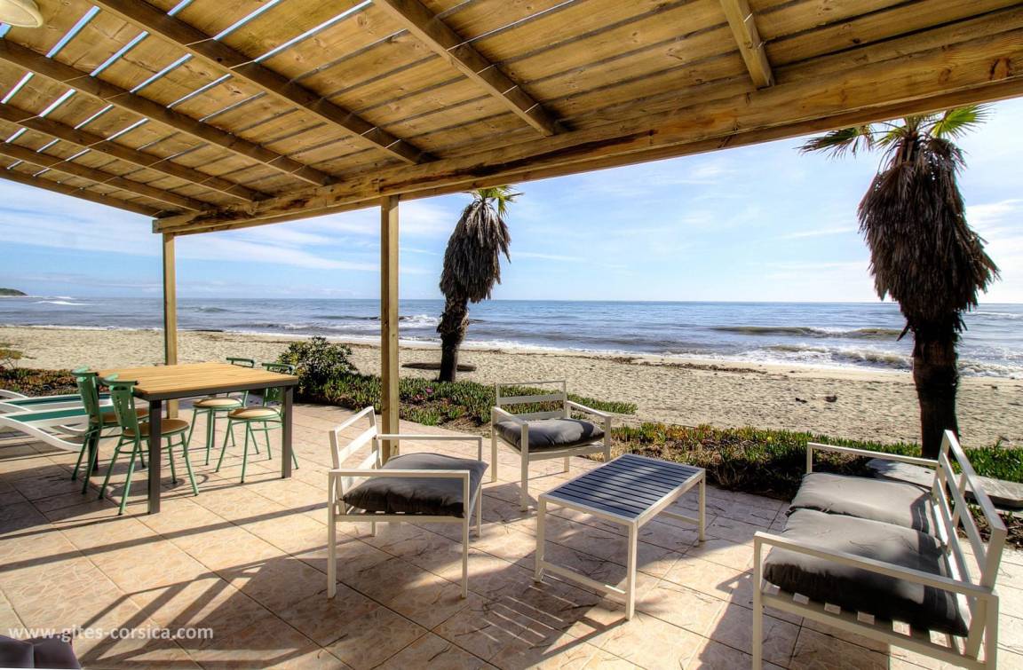 - Halbüberdachte Terrasse von 45 m² mit Blick auf das Meer (öffentlicher Strand, Urlauber können an der Terrasse vorbeigehen).