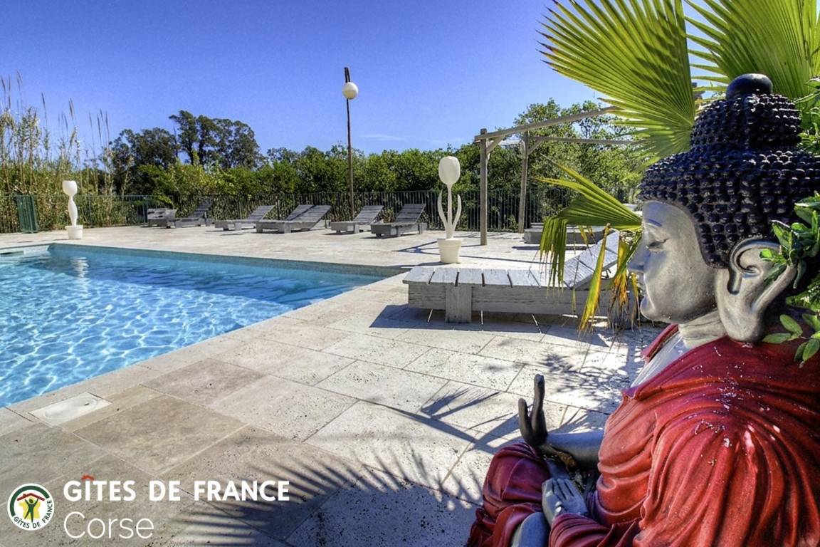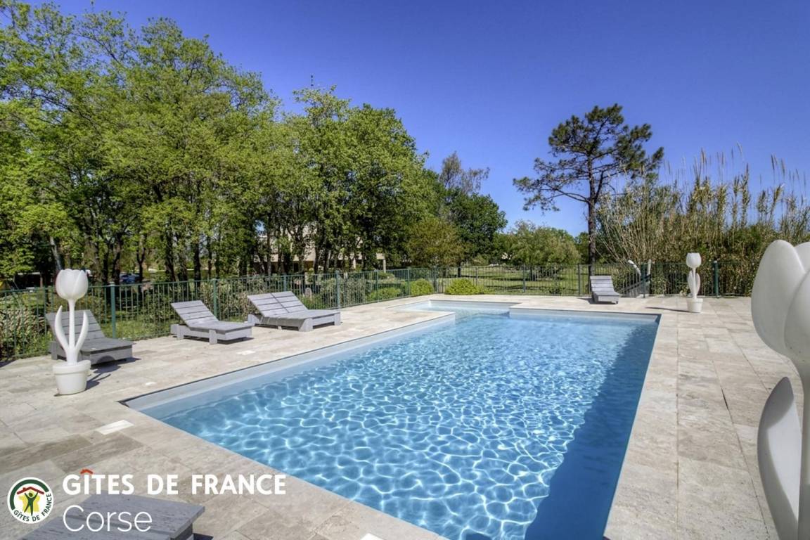 „Magnifique endroit, cadre reposant au calme, accès à la plage insolite, grand parc fermé idéal pour les enfants. Très joli logement décoré soigneusement et confortable. Toutes les commodités proches ce qui est appréciable. Nous venons en Corse depuis une dizaine d'années et nous avons hâte de revenir ici l'an prochain !La piscine un peu moins froide qd mm, ça aurait été le top Merci pour votre accueil chaleureux“
