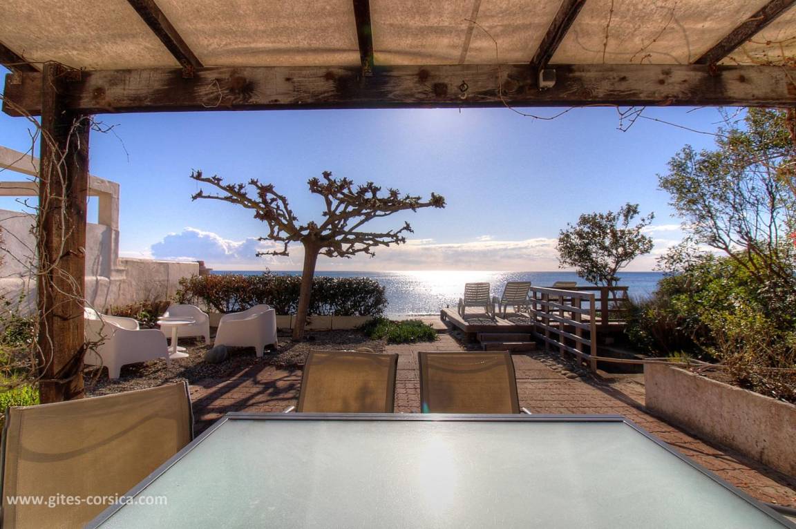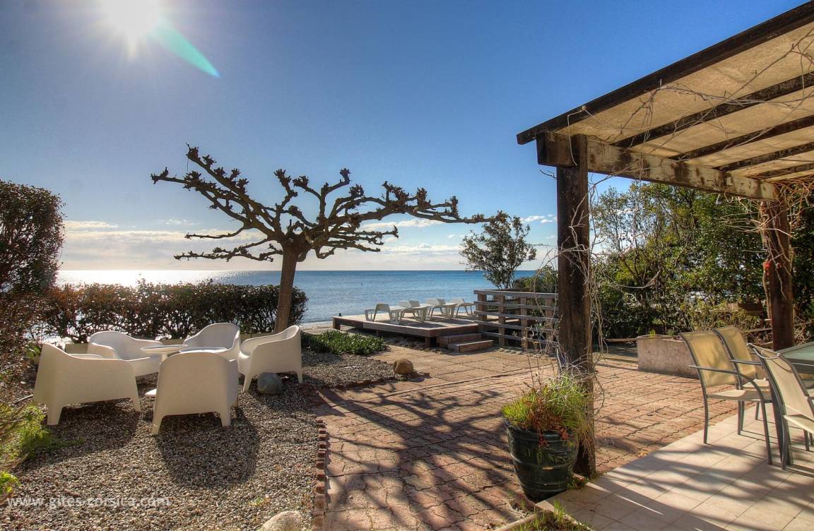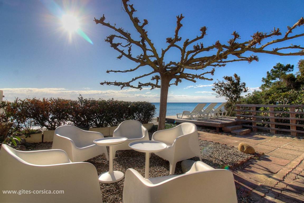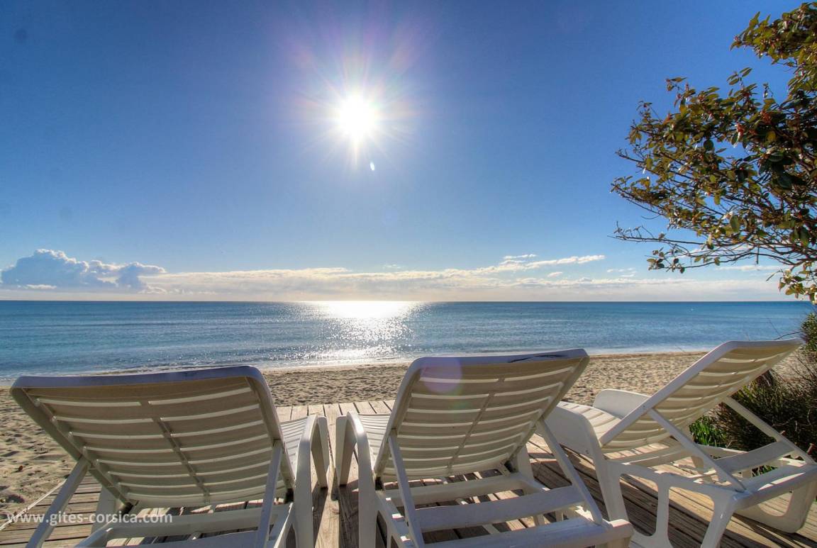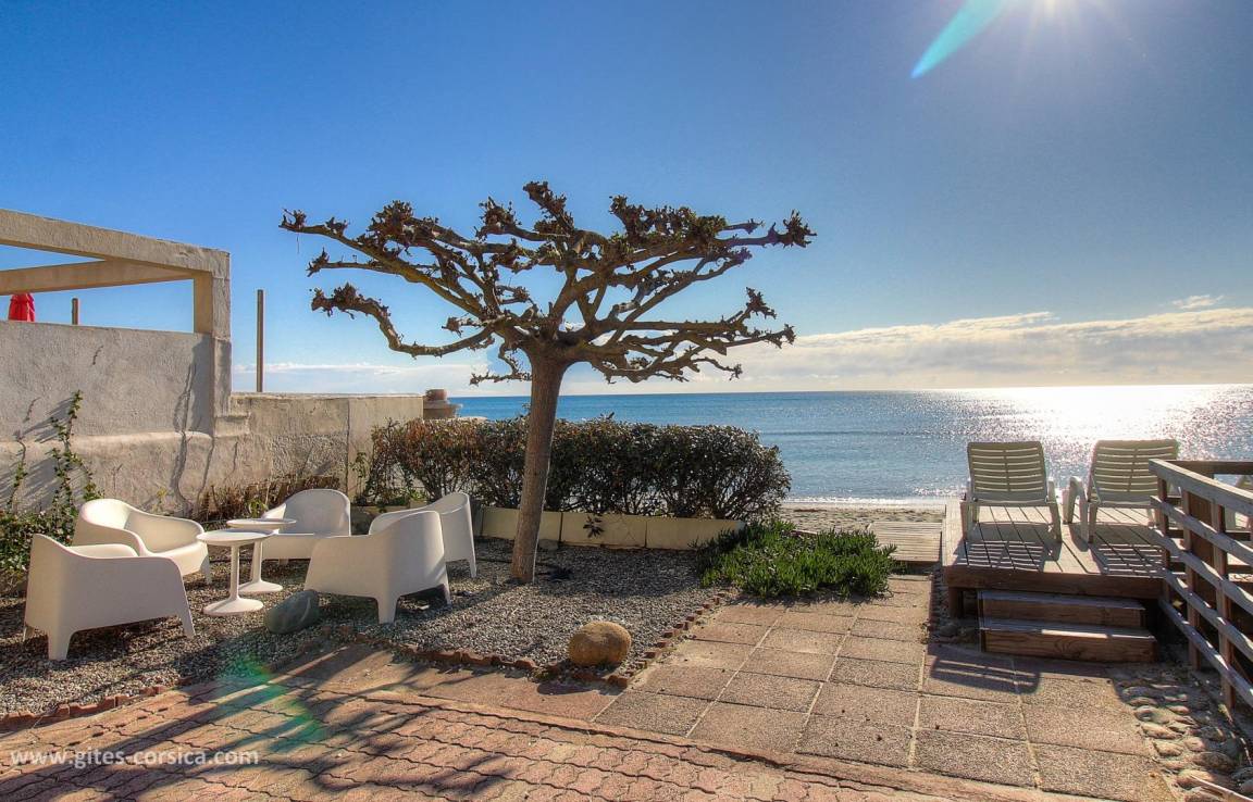 - Holzterrasse von 12 qm zum Meer mit 2 Liegestühle und privatem Zugang zum Strand