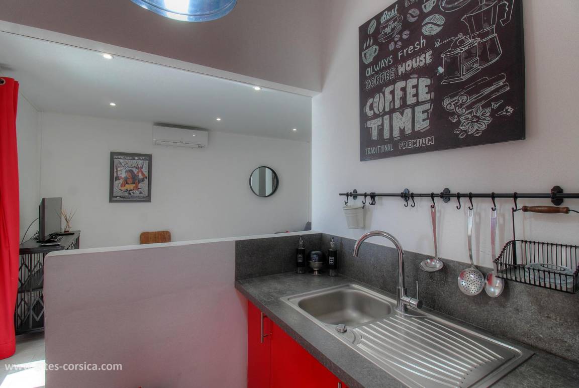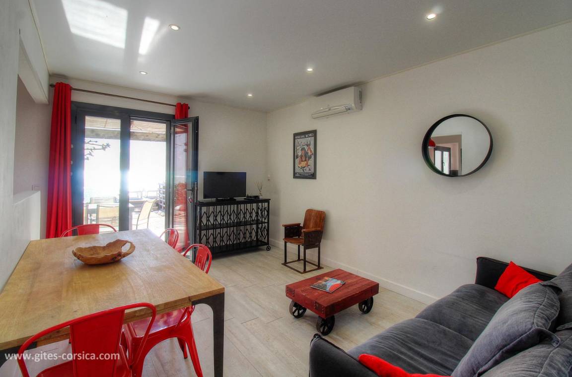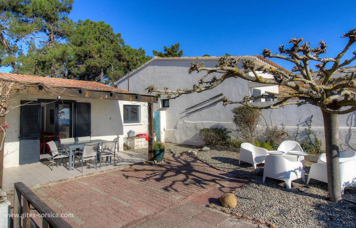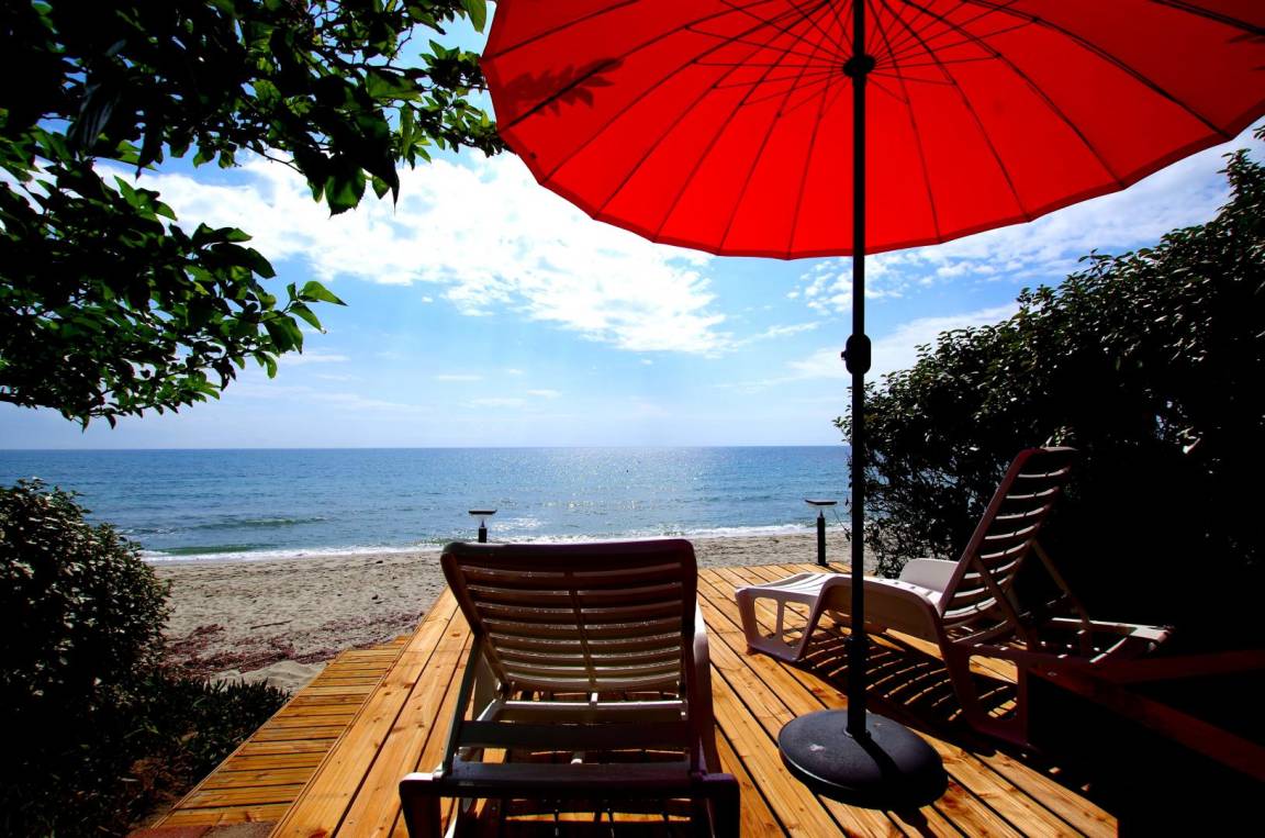 - Holzterrasse von 12 qm zum Meer mit 2 Liegestühle und privatem Zugang zum Strand