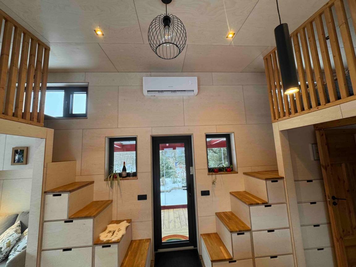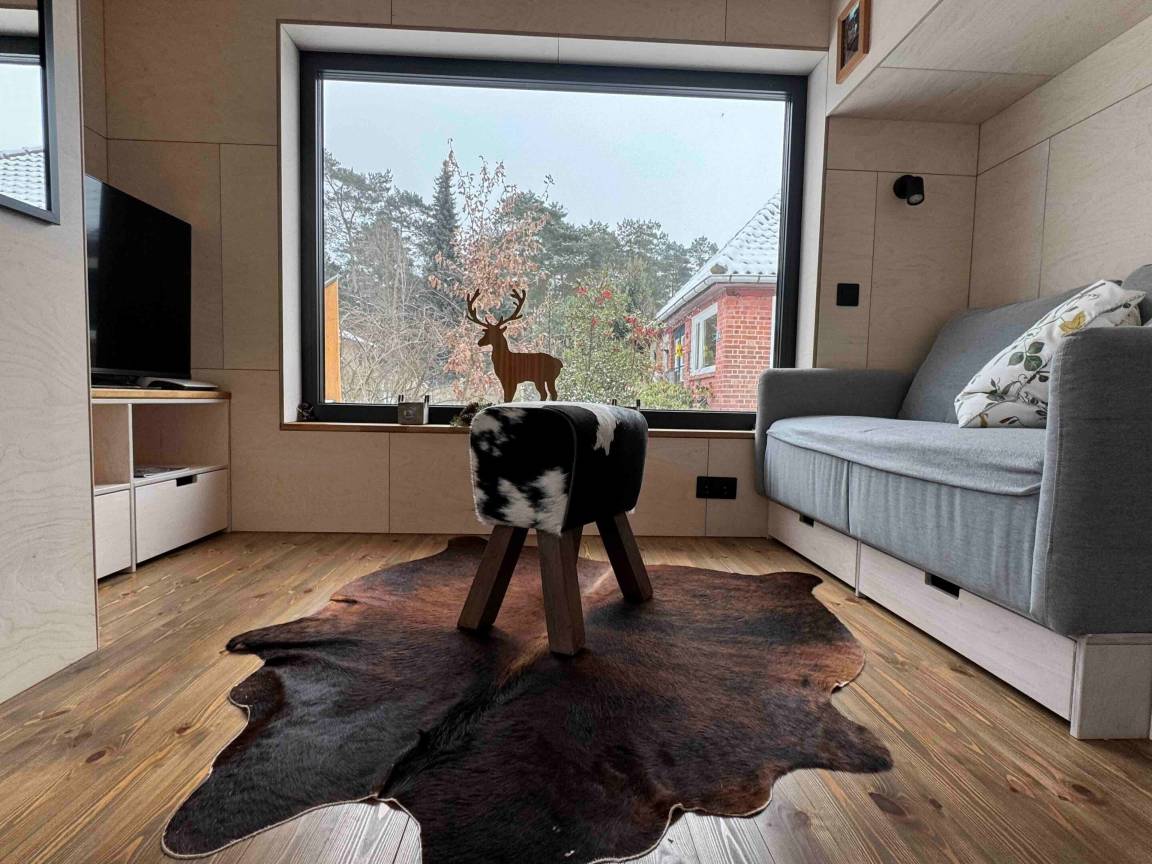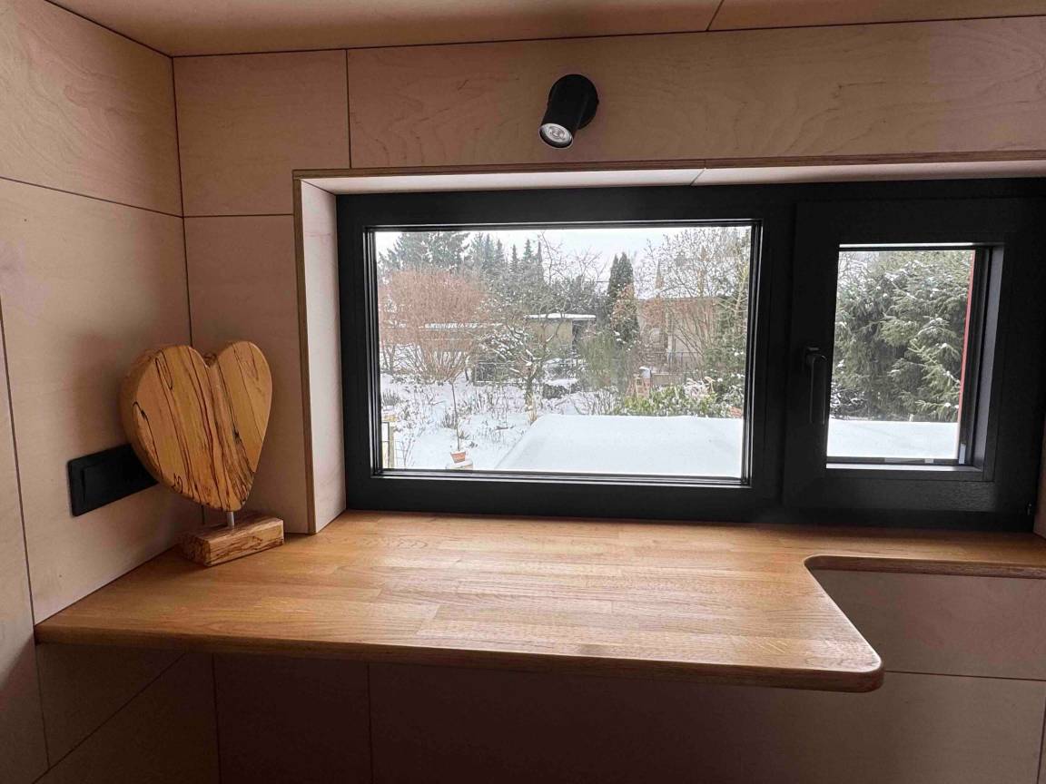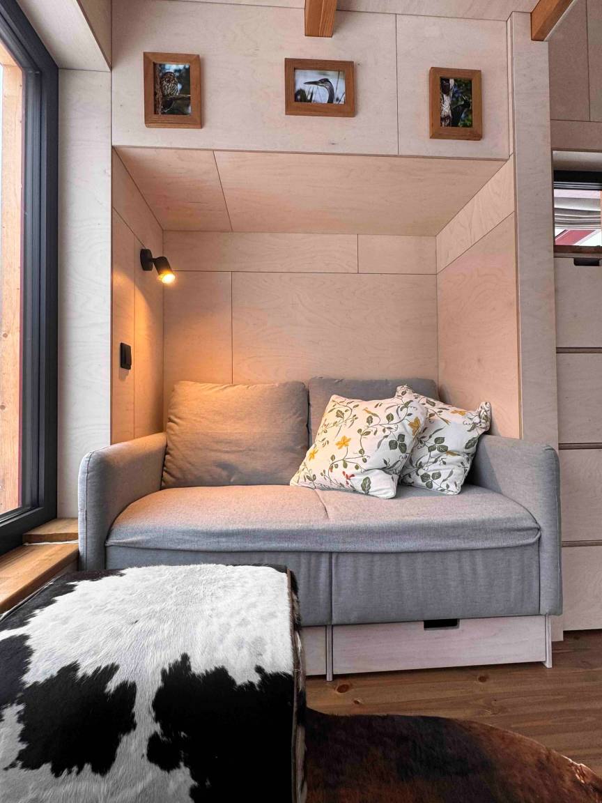 Stilvolles Tiny House "Frida" mit Wintergarten und Kamin.