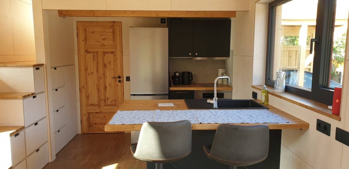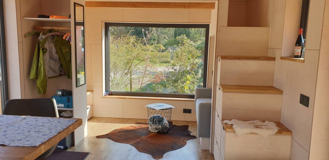 Lassen Sie sich überraschen, wie groß Tiny sein kann. Mit viel Liebe zum Detail stilvoll eingerichtet, bietet das Tiny House auf kompakter Fläche ein durchdachtes Wohnkonzept für bis zu drei Personen. Große Fenster und ein gemütlicher Wintergarten schaffen eine lichtdurchflutete Atmosphäre und eröffnen den Blick ins Grüne.