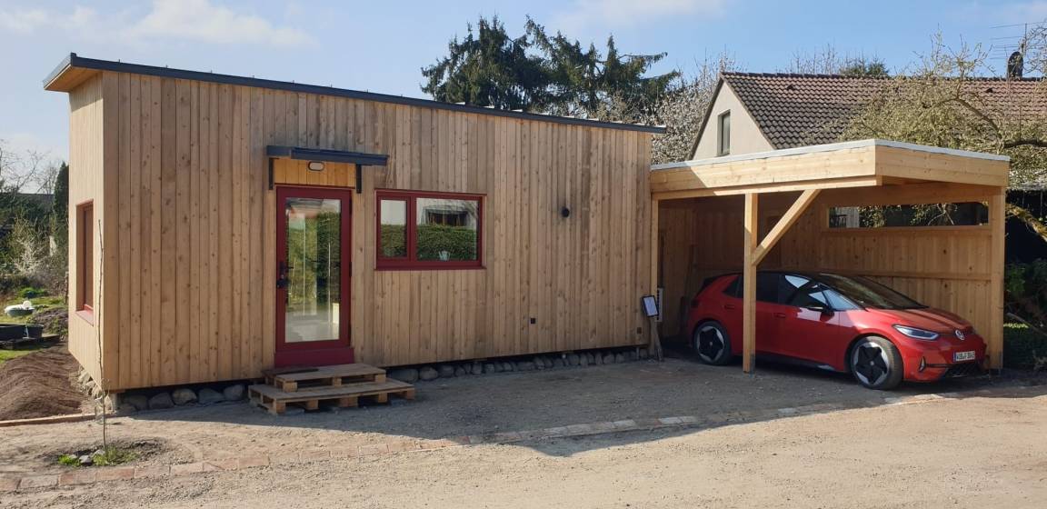 Ihr Auto steht derweil geschützt im Carport, während Ihre eBikes im abgeschlossenen Schuppen neue Energie tanken..