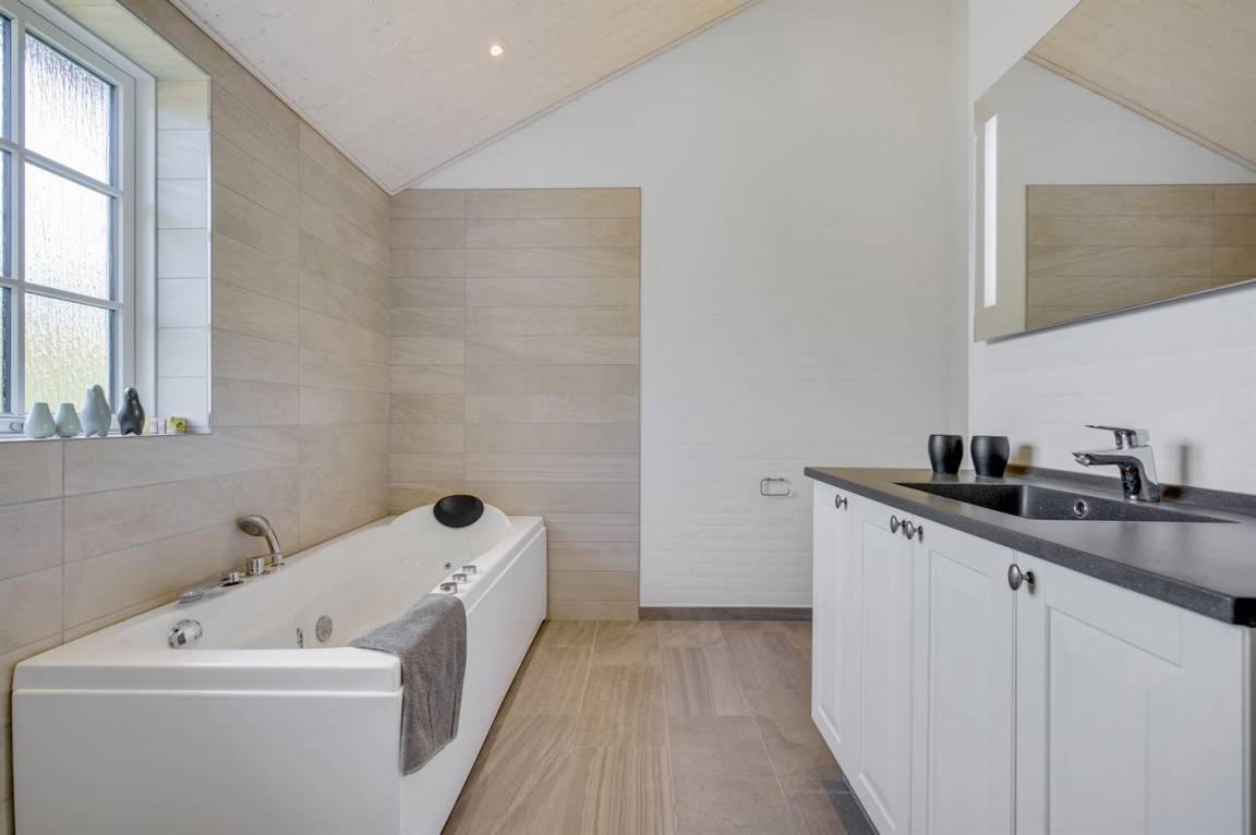 Es gibt 3 geräumige Schlafzimmer und 2 Badezimmer mit Fußbodenheizung und Duschnische. Ein Badezimmer ist zudem mit einem Whirlpool für 1 Person ausgestattet.