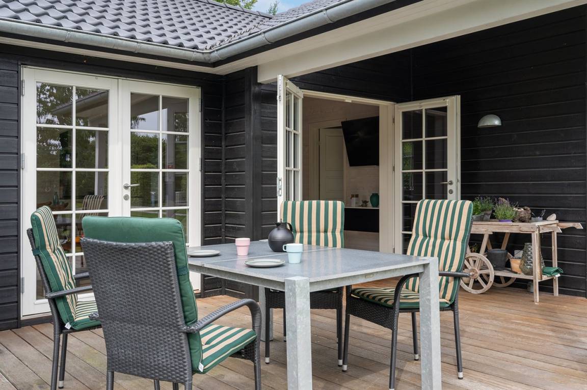 „Advice to other guests: Ruhige Lage am Ende einer Sackgasse. Terrasse den ganzen Tag über Sonne. Die Bilder entsprechen völlig der Realität. Guter Standort für Besichtigungen und (Fahrrad-) Unternehmungen auf Seeland. Lebensmittel um 'die Ecke'. Generell waren während unserer Urlaubszeit im September wenige Urlauber unterwegs, so dass auch nicht jedes Geschäft geöffnet hatte. Wunderbare Nebensaison! The vacation at the holiday home: Nähere Informationen bzgl. Handling des Abfalls wäre für uns hilfreich gewesen. Verbrauchskosten wurden noch nicht abgerechnet, daher keine Bewertung. The holiday home itself: Da das unser erster Ferienhaus-Dänemark-Urlaub war haben wir keinen Vergleich. Wir fanden das Haus und Grundstück sehr gepflegt, gut eingerichtet, Küchenutensilien mehr als ausreichend (beeindruckend scharfe Messer!), funktionale Beleuchtung. Ein Kamin wäre natürlich bei dem leider schlechtem Septemberwetter angenehm gewesen.“
