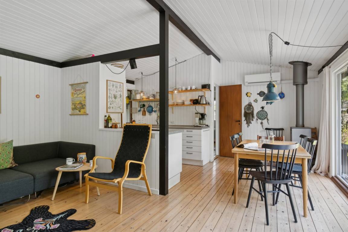 EinrichtungDas Ferienhaus eignet sich für 6 Personen sowie 1 Kleinkind bis zu 3 Jahren. Die Ferienunterkunft hat eine Wohnfläche von 65 m² und wurde 1965 gebaut. Haustiere dürfen nicht mitgebracht werden. Die Ferienunterkunft ist mit energiesparender Wärmepumpe ausgestattet. Tiefkühlmöglichkeit mit 40 Liter Nutzinhalt. Es gibt außerdem einen Kaminofen.