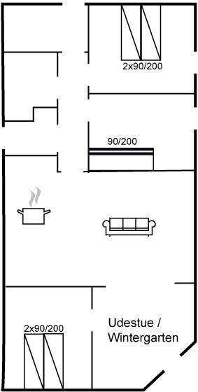 SchlafverhältnisseDie Schlafplätze verteilen sich auf 3 Schlafräume. 4 Schlafplätze in Doppelbetten. 2 Schlafplätze in einem Etagenbett.