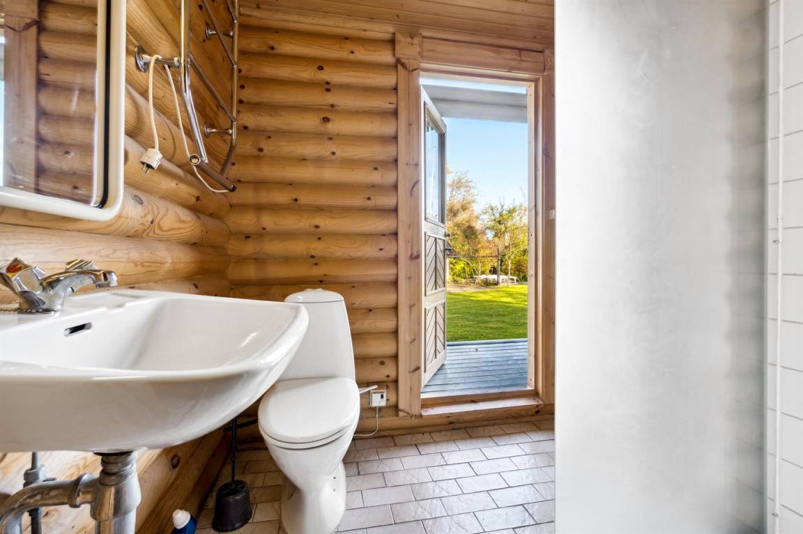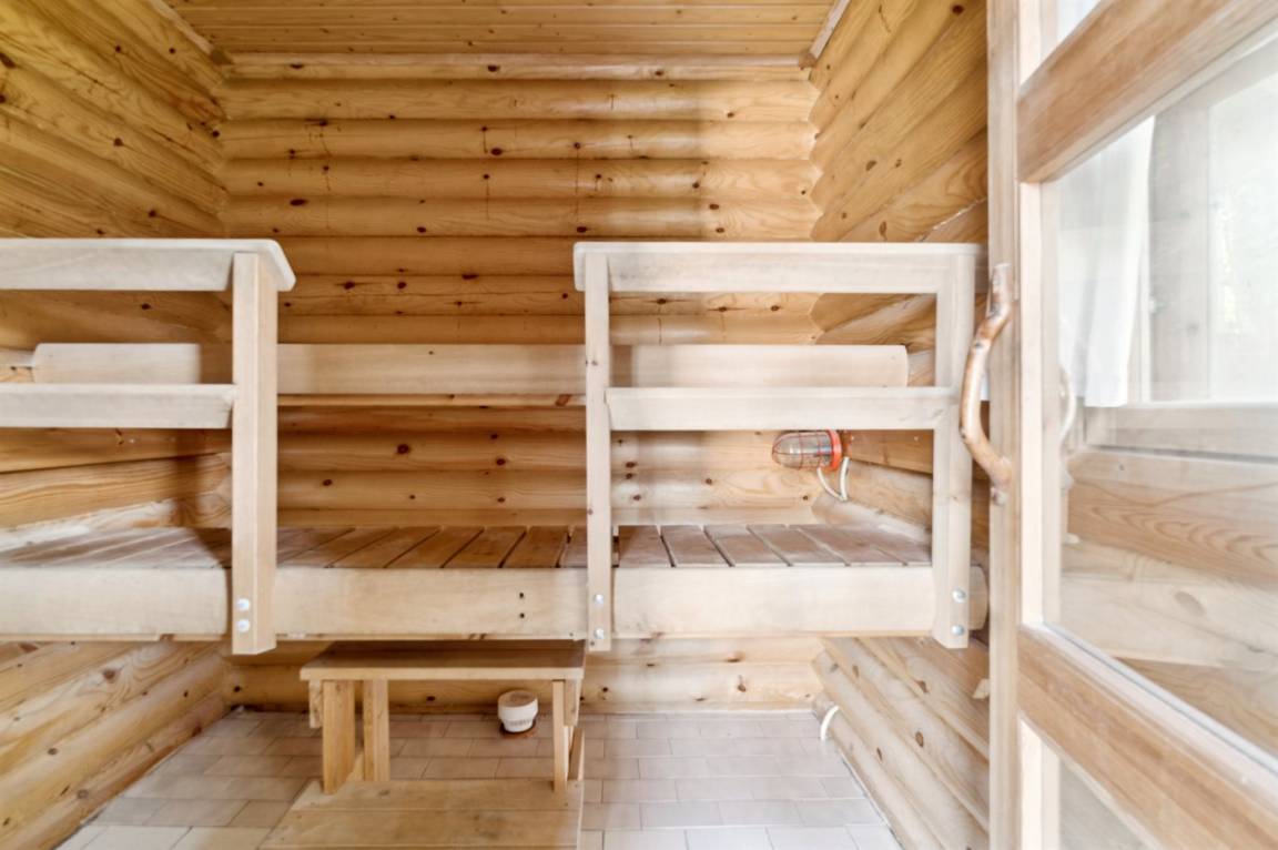 Auf dem Grundstück liegt ein kleines Gästehaus, das mit zwei Schlafplätzen, einem Badezimmer und einer kleinen Sauna ausgestattet ist. Um das Badezimmer und die Sauna nutzen zu können, muss man jedoch die gemütliche Veranda des Gästehauses überqueren.