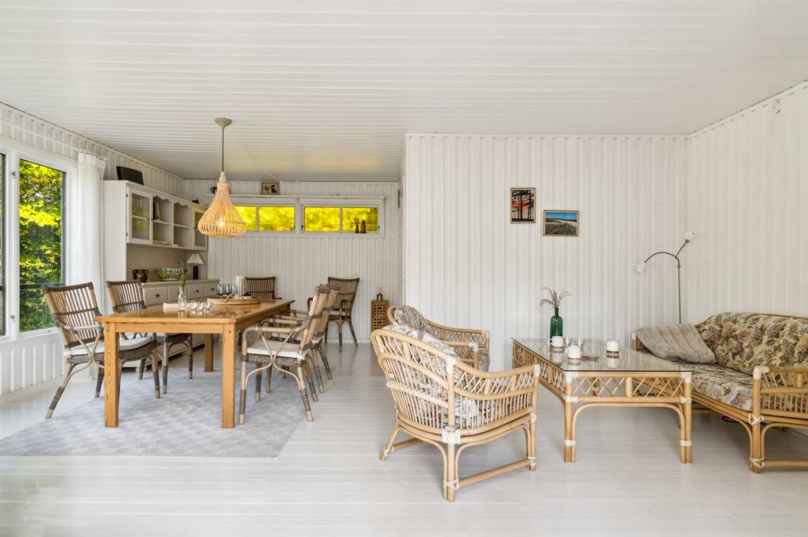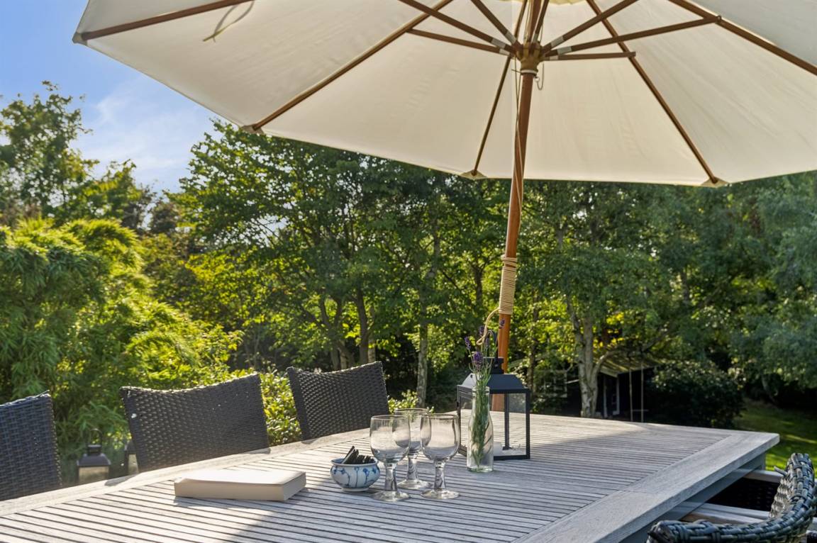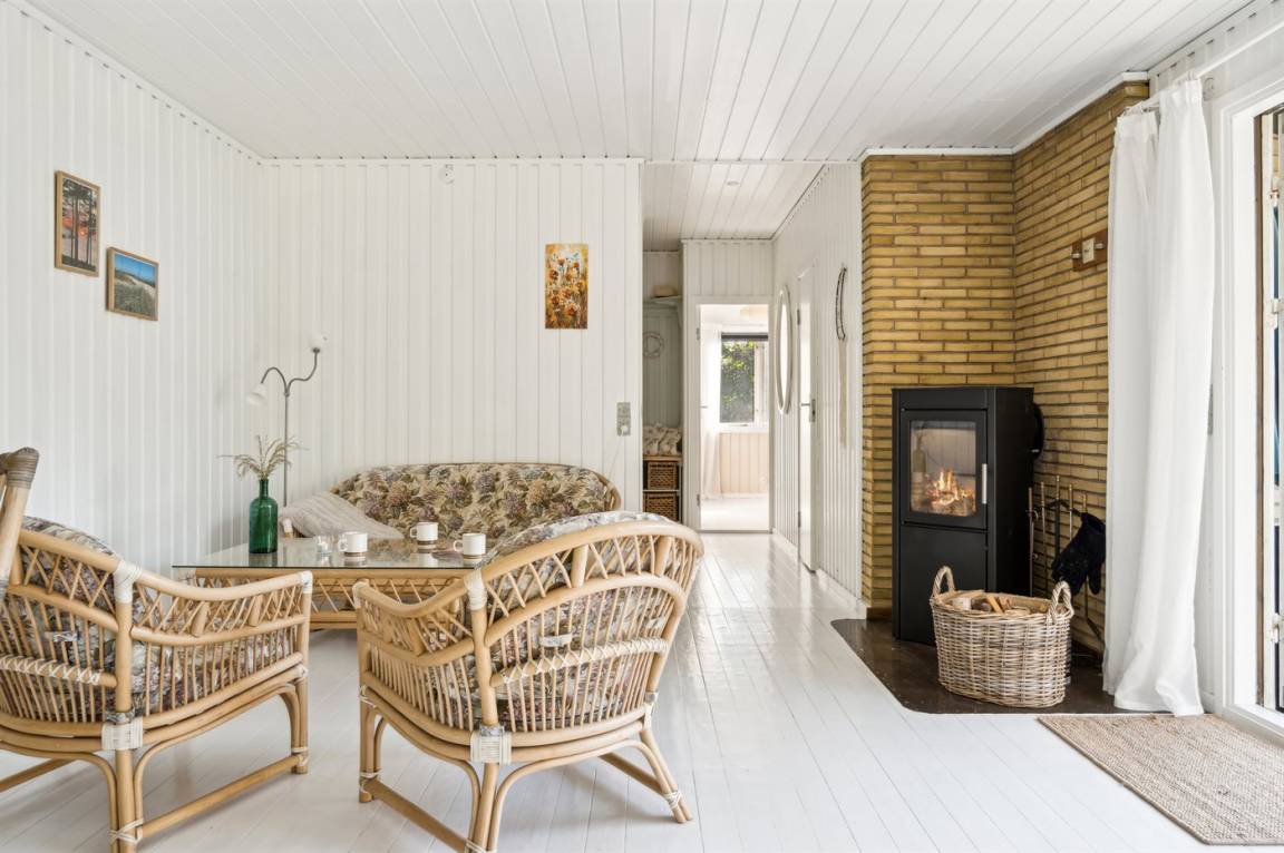 Das Haus bietet eine herrliche Aussicht auf den großen Garten von der Terrasse aus, wo ein Gasgrill für köstliche Sommergerichte bereitsteht, die zusammen mit einem Glas Rosé in den guten Gartenmöbeln genossen werden können. Die drei Schlafzimmer sind alle mit neuen luxuriösen Doppelbetten ausgestattet, und das Badezimmer ist ebenfalls neu und verfügt über Toilette, Waschbecken, Duschniche sowie Fußbodenheizung. Das Haus wurde behutsam renoviert und ist mit neuen Haushaltsgeräten wie Geschirrspüler, Kühl-/Gefrierschrank usw. ausgestattet. Das Ferienhaus wird umweltfreundlich mit Luft/Luft-Wärmepumpen beheizt, und es gibt auch einen Kamin.