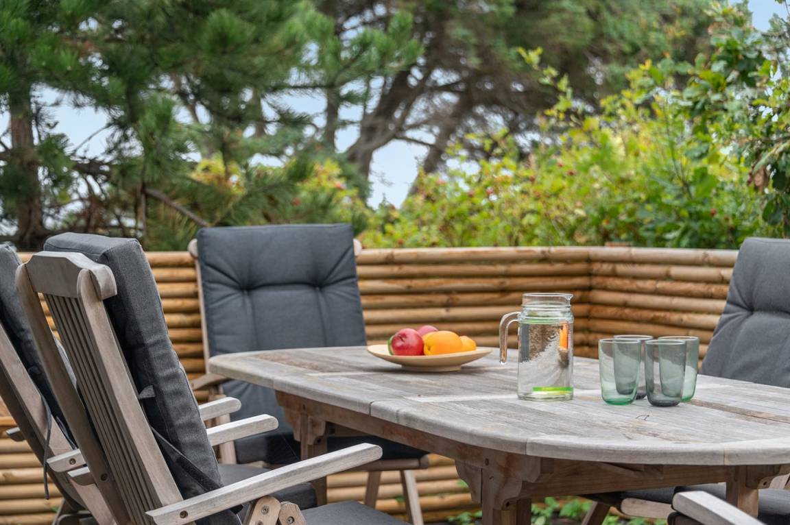 DraußenDie Ferienunterkunft liegt auf einem 3182 m² großen Gartengrundstück. Die Entfernung zum Meer beträgt 25 m. Es gibt einen Badesteg in der Nähe. Die nächste Einkaufsmöglichkeit liegt 1250 m entfernt. In einem Abstand von 8000 m gibt es einen Golfplatz. Es steht ein 70 m² Terrassenareal zur Verfügung. Außerdem gibt es 15 m² überdachte Terrasse. Es steht ein Grill zur Verfügung. Es steht ein Carport zur Verfügung. Parkplatz auf dem Grundstück.