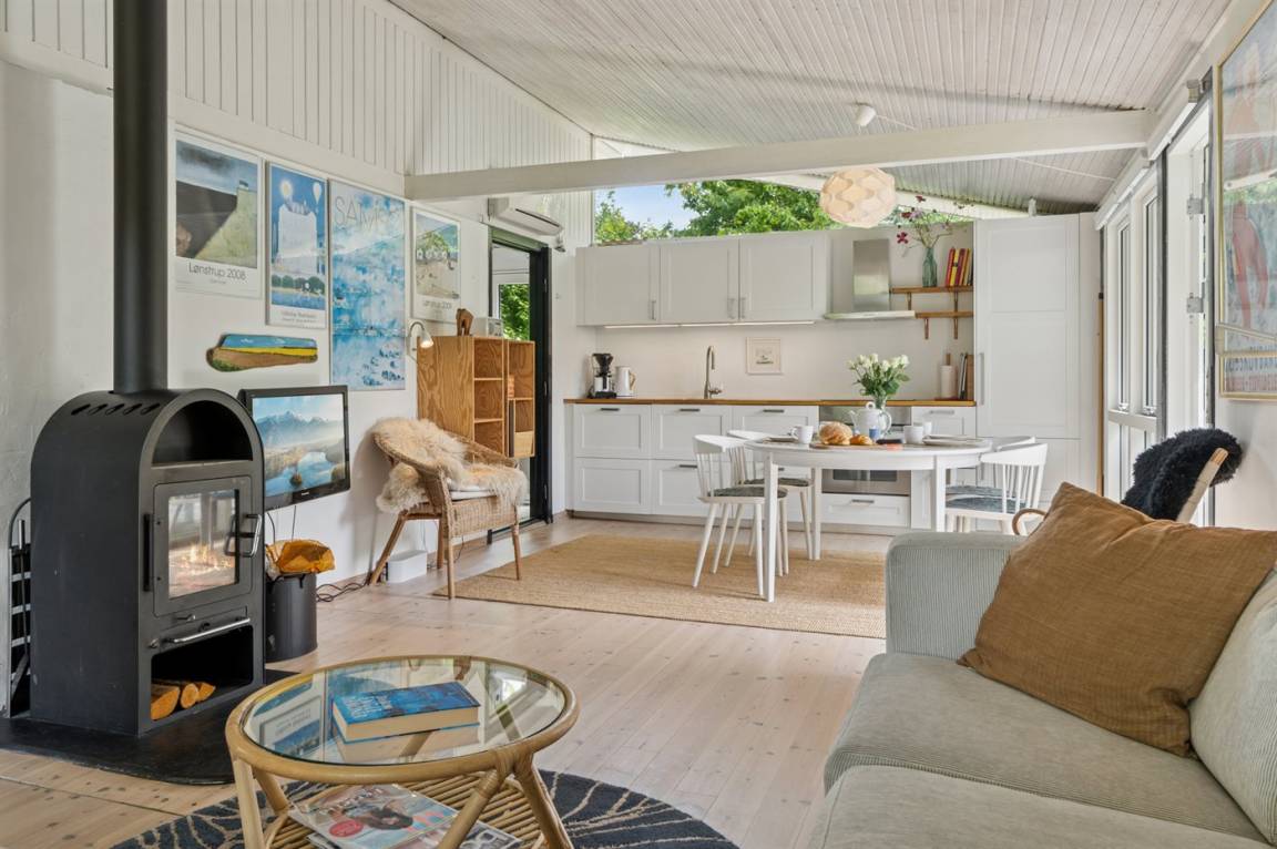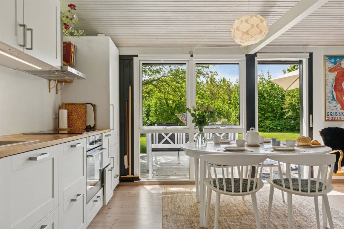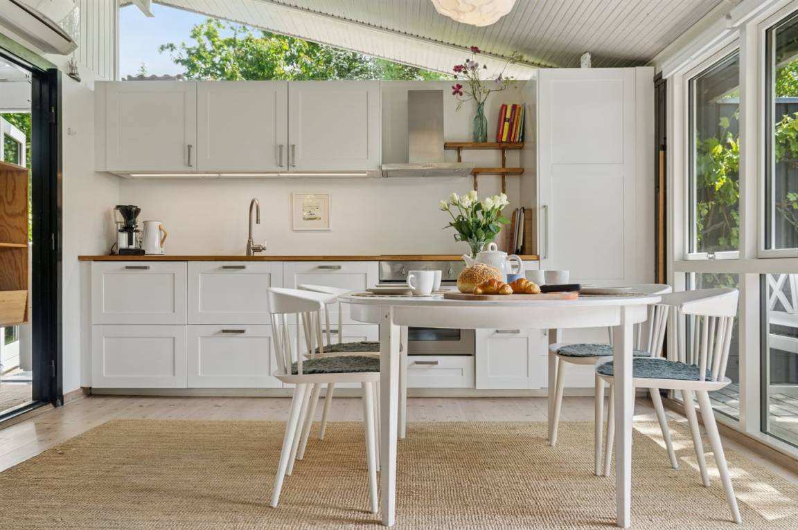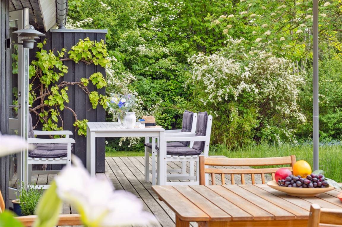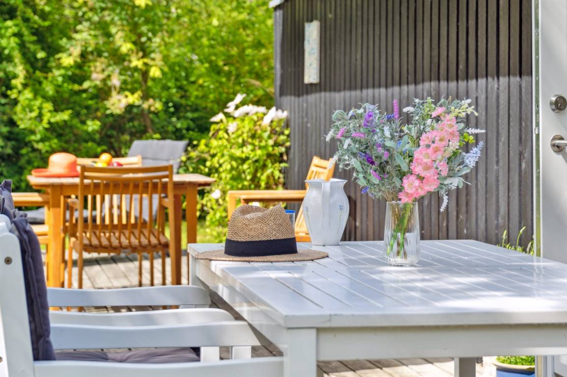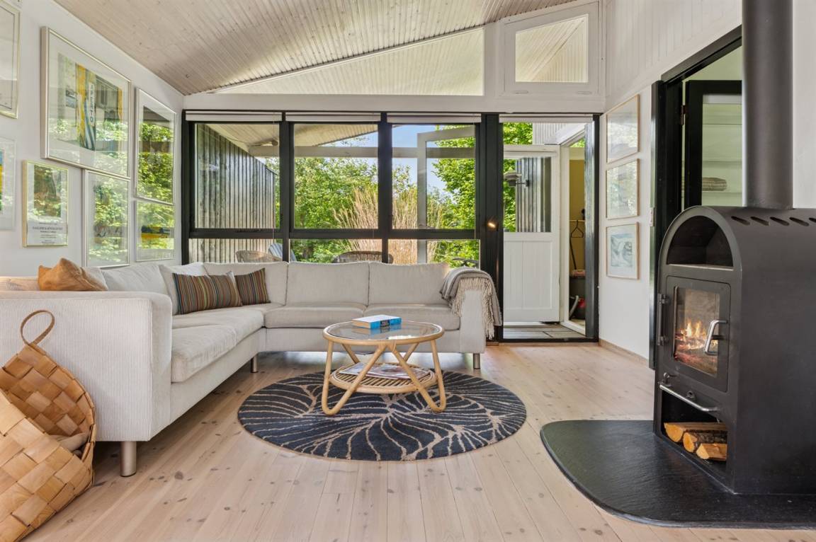 Sommerhausidylle kommt bei diesem schönen, kleinen Sommerhaus i jeder Hinsicht bestens zur Geltung. Das Haus liegt in ruhiger Lage, nur wenige Fahrradminuten vom Strand entfernt. Im Sommer trägt die Bepflanzung des Grundstückes zur Privatatmosphäre bei. Den Sonnenaufgang kann man von der Terrasse bei der Eingangstür genießen, den Sonnenuntergang von der überdachten Westterrasse.