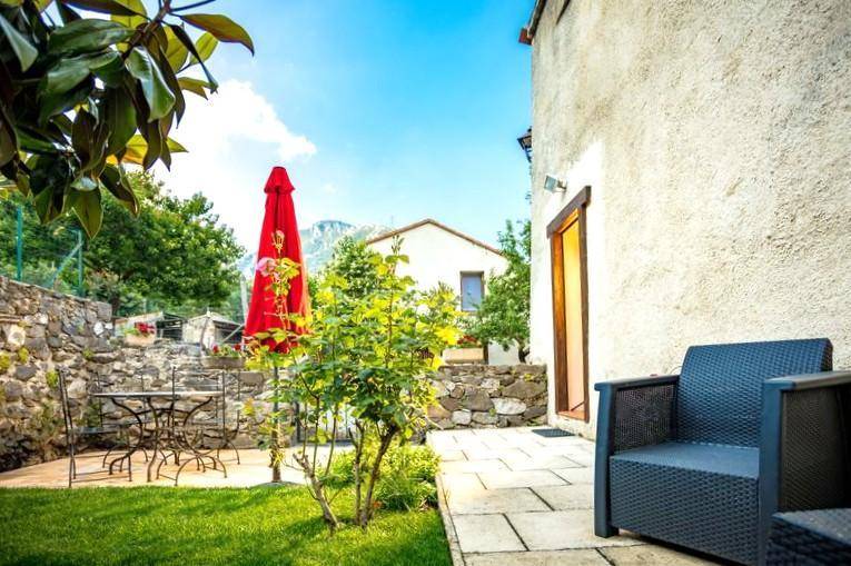 „Ruhiges Dorfleben inmitten der Natur - Berge, bizarre Felsen, Wald, Bachlauf, selten Autoverkehr.“