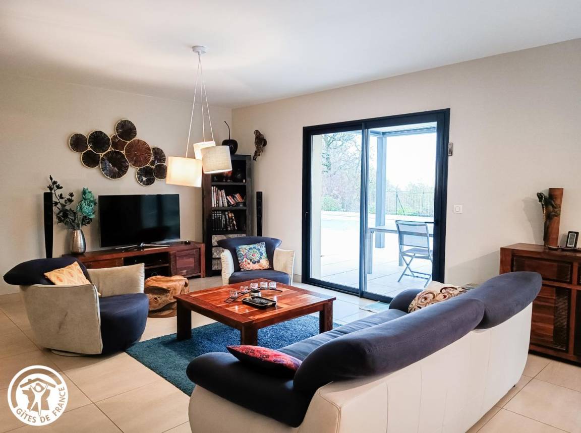 „Gîte propre ultra équipé à la décoration soignée. Magnifique terrasse avec grande piscine avec une vue dégagée sur une belle nature. Calme, tranquillité et sérénité. La voiture est indispensable pour accéder à tous les commerces nécessaires à 5 km. Accueil chaleureux des propriétaires. Merci pour ces belles vacances.“