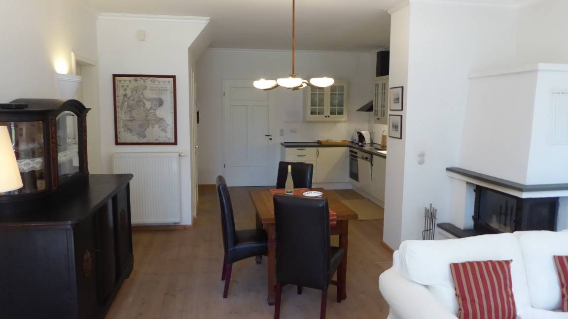 Küche, Ess- und Wohnzimmer mit offenem Kamin, Schlafzimmer, Bad mit Dusche, WC, eigene Sauna, offener Kamin, eigener Freisitz mit Gartenmöbeln und Grillmöglichkeit, direkter Zugang zum Garten