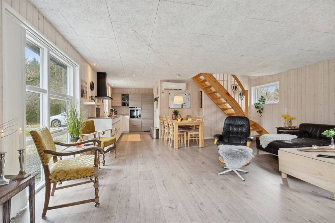 Dieses schöne und einladende Ferienhaus, 2016 gebaut, liegt in einer ruhigen und naturschönen Umgebung – in einem kleinen Feriengebiet bei Vesterlund, nahe an der Stadt Give. Das Ferienhaus liegt auf einem herrlichen Grundstück und es gibt gute Terrassen, die sich rund um das Haus verteilen - hier hast du daher besonders gute Möglichkeiten die Ruhe und Natur in vollen Zügen zu genießen. Darüber hinaus gibt es auch mehrere, vor dem Wind geschützte Ecken.