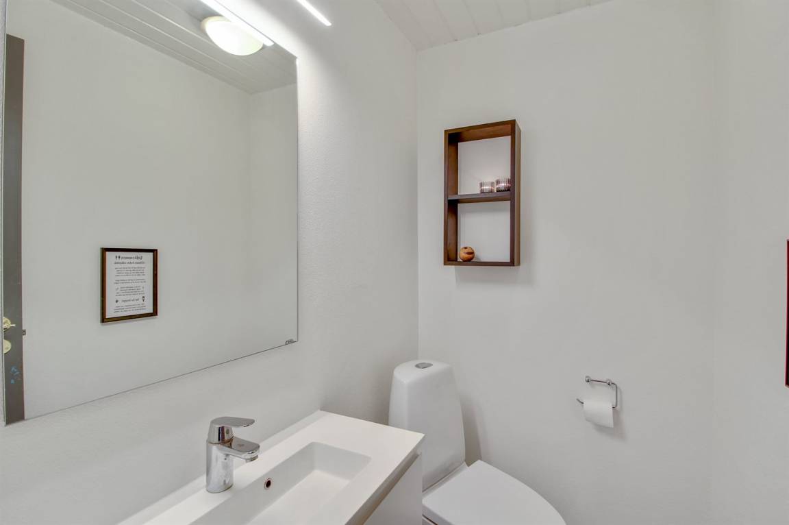 „Prior to the vacation at the holiday home: Der stod i beskrivelsen at der var en købmand 1000m væk. Den var ifølge de lokale lukket for flere år siden. Det gør en forskel, om man har indkøbs muligheder i nærheden eller ej.“