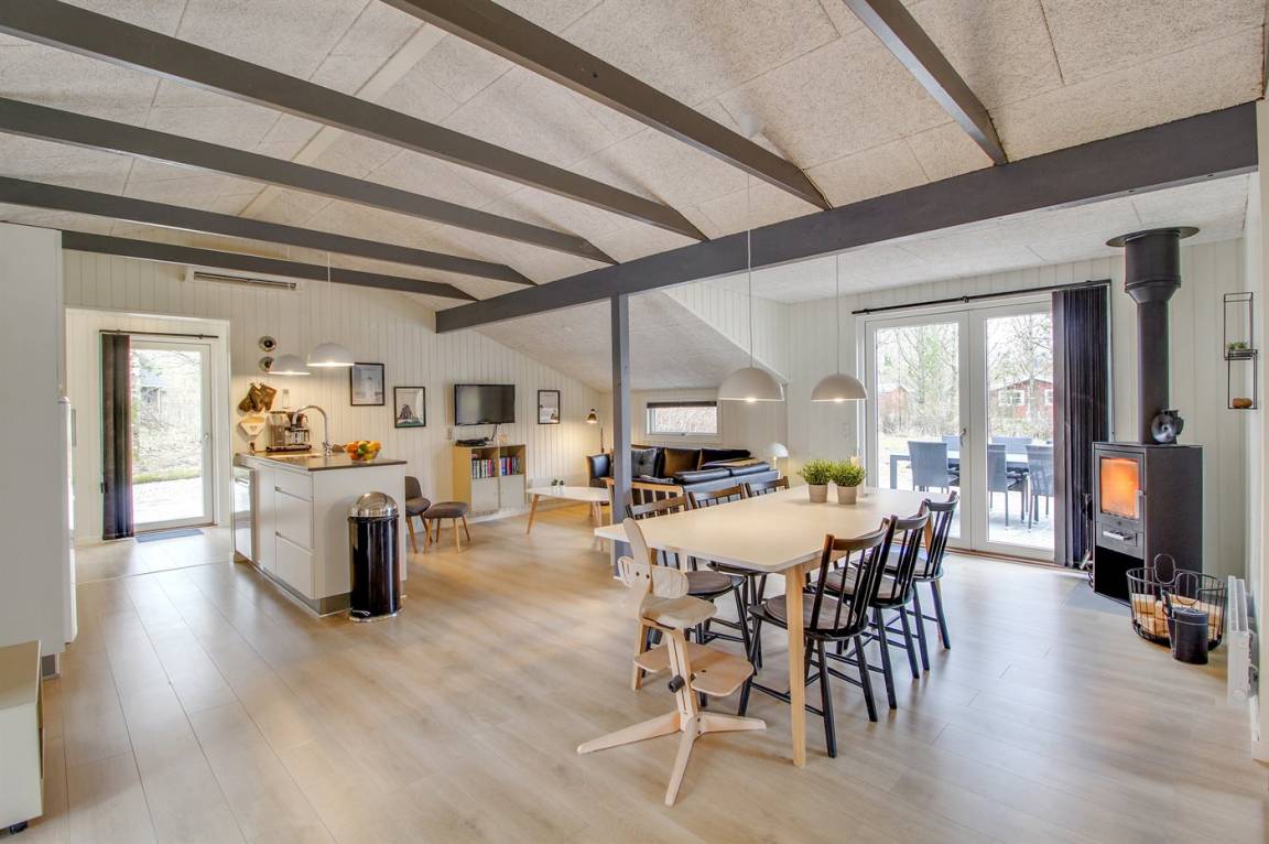 EinrichtungDas Ferienhaus eignet sich für 6 Personen sowie 1 Kleinkind bis zu 3 Jahren. Die Ferienunterkunft hat eine Wohnfläche von 96 m² und wurde 1981 gebaut. 2022 wurde die Ferienunterkunft renoviert. Es ist erlaubt 1 Haustier mitzubringen. Die Ferienunterkunft ist mit energiesparender Wärmepumpe ausgestattet. Die Ferienunterkunft ist mit Waschmaschine ausgestattet. Wäschetrockner. Es gibt außerdem einen Kaminofen. Für die jüngsten Feriengäste ist 1 Kinderhochstuhl vorhanden.