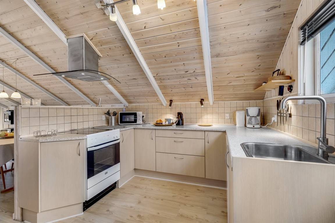 „Cleanliness: Krummer på spisebordet var tørret af, lidt for hurtigt, og derfor lå de istedet på stolesæderne. Jeg rengjorde det, og støvsugede stuen. Det var ikke noget stort problem, men dog lidt underligt, og første gang vi har oplevet det hos Sol og Strand. The holiday home itself: Loftet i køkkenet var for lavt, og vi slog flere gange hovedet ind i bjælkerne, Emhættens hjørner passede lige i højde til at man kunne ramme dem med øjnene. Vi opgav at lave mad der, udover smørrebrød. køkkenlågen, under vasken, manglede øverste skrue. Bundskruerne i brusekabinen sad løse og 1 var faldet ud. Køkkendøren er ret utæt forneden. Ellers var vi glade for huset“