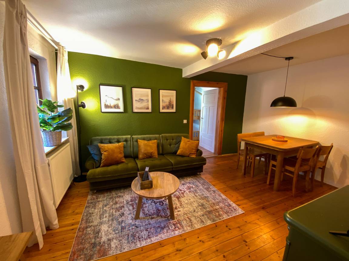 Das Duschbad mit Toilette sorgt für zusätzlichen Komfort, während die voll eingerichtete Küche es euch ermöglicht, eure Lieblingsgerichte zuzubereiten und gemeinsam zu genießen. Natürlich steht auch ein Hochstuhl und Kindergeschirr zur Verfügung. Bei der Einrichtung haben wir besonderen Wert auf Ästhetik, Gemütlichkeit und Familientauglichkeit gelegt, damit sich Groß und Klein sofort wohlfühlen.