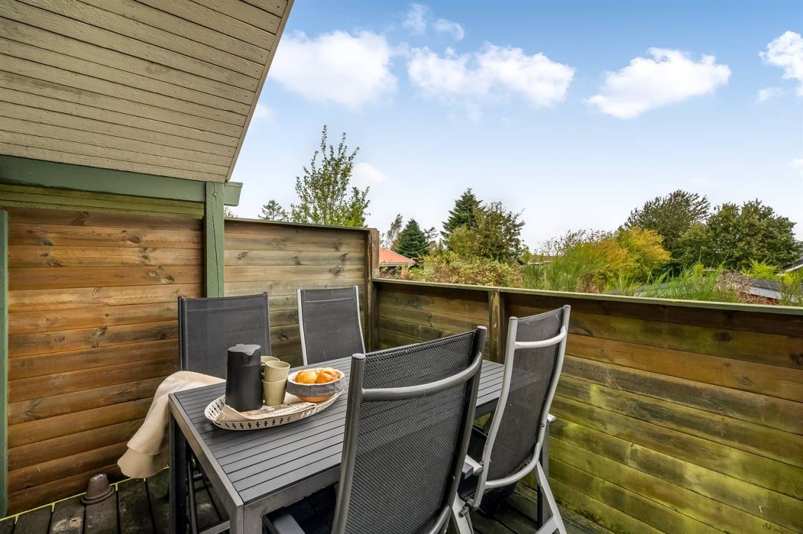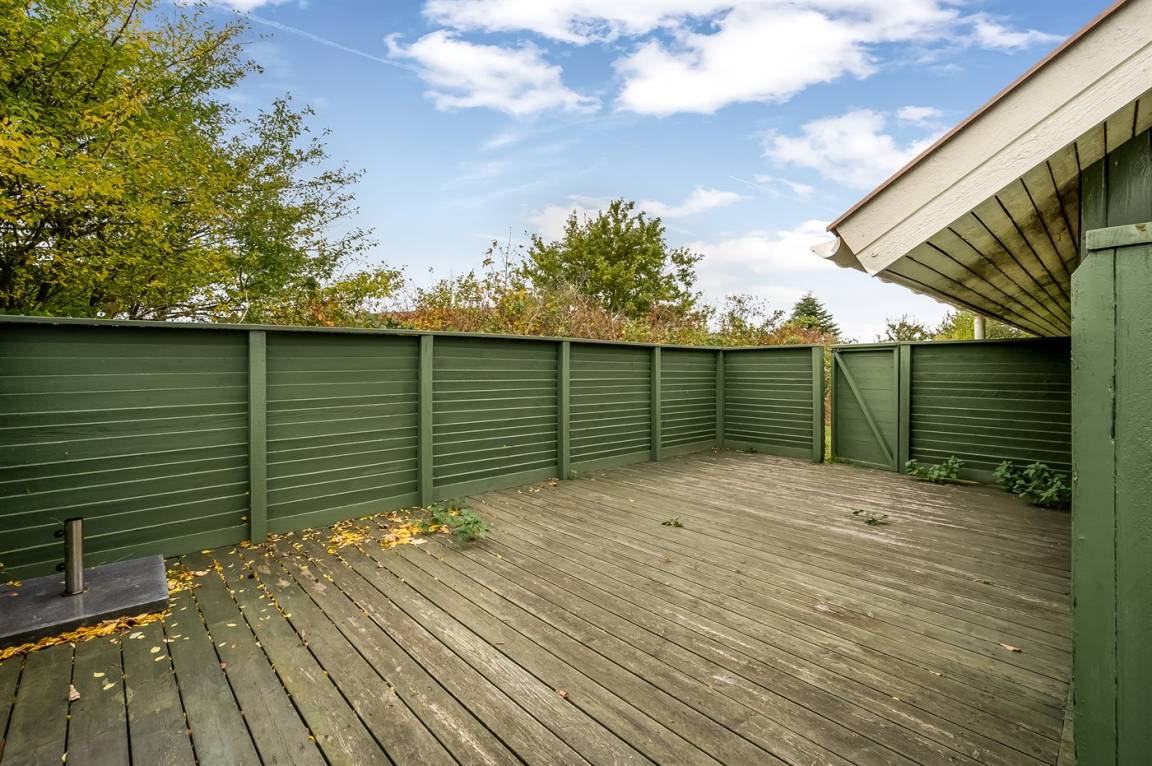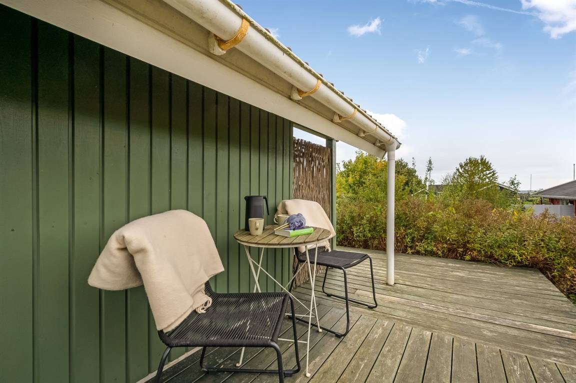 Das Haus liegt auf einem großen und schönen Grundstück mit viel Platz für Ballspiele und andere Aktivitäten im Freien. Die teilweise überdachten Terrassen, die sich auf mehreren Seiten des Hauses befinden, bieten die Möglichkeit an, den ganzen Tag über der Sonne zu folgen, und es gibt immer eine gemütliche Ecke mit Windschutz, in der man die Ruhe in vollen Zügen genießen kann. Von einer der Terrassen – sowie vom Inneren des Hauses – hat man zudem einen schönen Blick auf das Wasser.