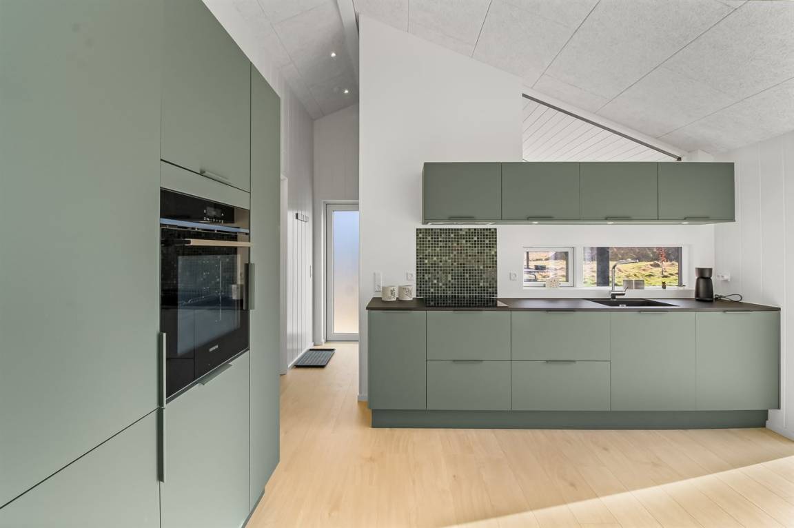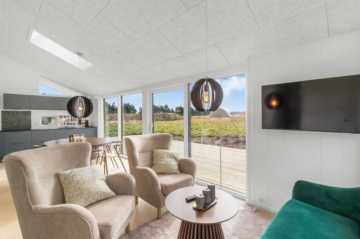 Das Ferienhaus tritt modern, hell und einladend hervor und ist durchgehend mit hochwertigen Materialien ausgestattet. Der natürliche Mittelpunkt des Hauses ist die große, offene Küche mit Essbereich in Verbindung mit dem Wohnzimmer – ein wunderbarer Aufenthaltsraum mit viel Licht und Platz für gemeinsame Stunden. Die Einrichtung ist ideal für bis zu 6 Personen und eignet sich perfekt für Familien und Paare, die Ruhe, Komfort und Naturerlebnisse bevorzugen.