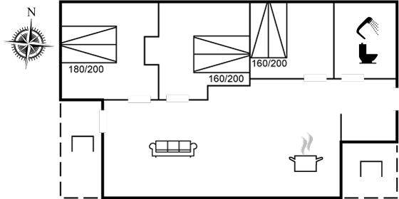 Das Ferienhaus hat eine Wohnfläche von 70 m² und verfügt über 3 Schlafzimmer mit Doppelbetten (6 Schlafplätze). Es ist mit einer energiesparenden Luft-Luft-Wärmepumpe, beheizbare Fliesenböden sowie einem Kaminofen ausgestattet.
