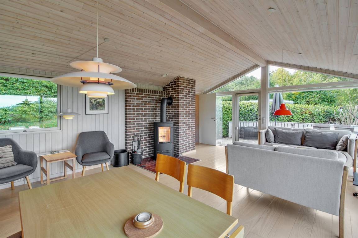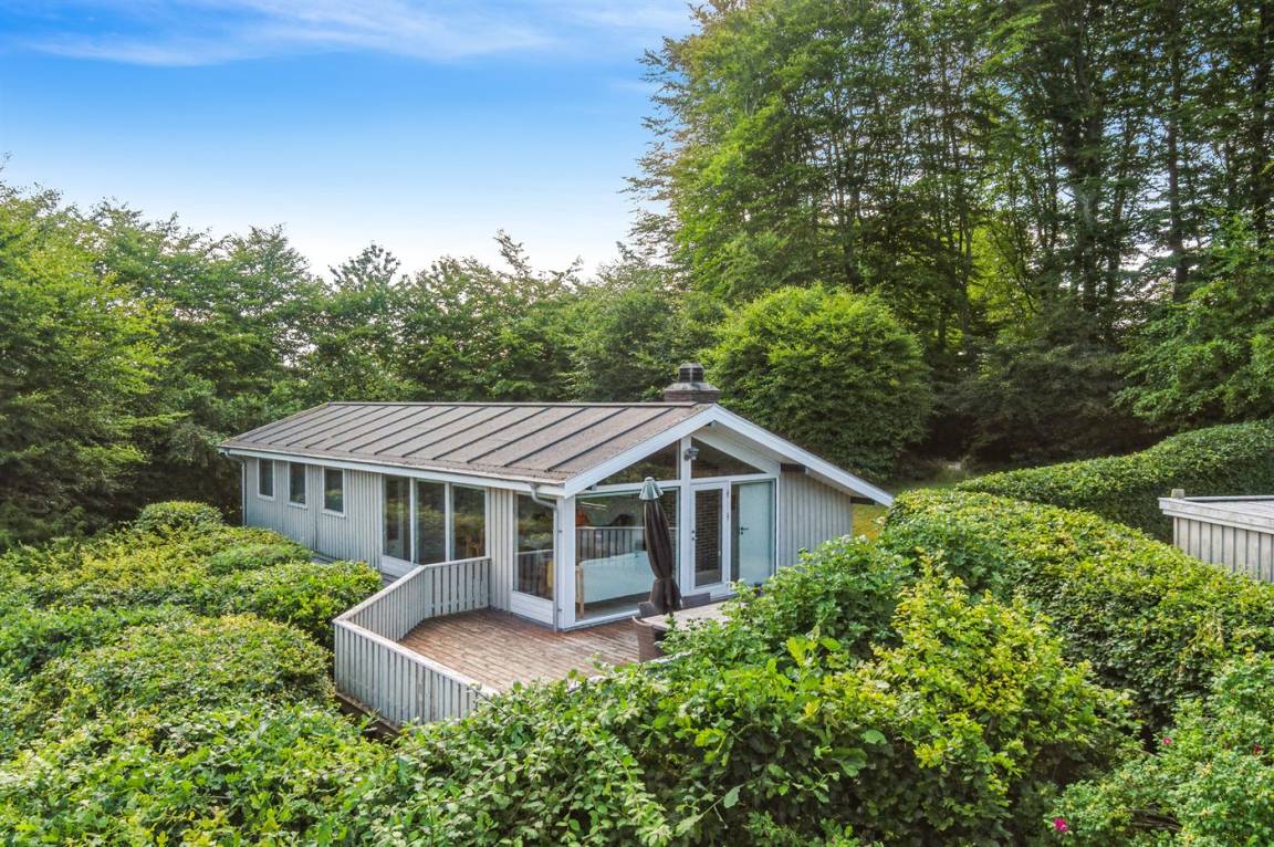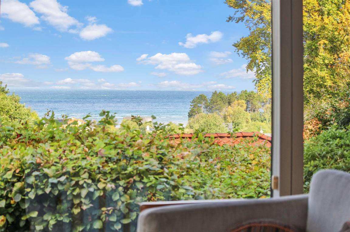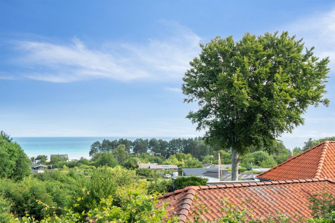 Auf einem leicht hügeligen Grundstück mit Meerblick – sowohl vom Haus als auch vom Grundstück aus, liegt dieses gepflegte Ferienhaus. Das Haus hat ein großes, hell eingerichtetes Wohnzimmer. Zum Haus gehören eine westlich ausgerichtete Holzterrasse mit direktem Zugang vom Wohnzimmer sowie eine östlich ausgerichtete Holzterrasse.