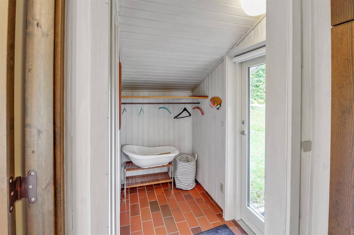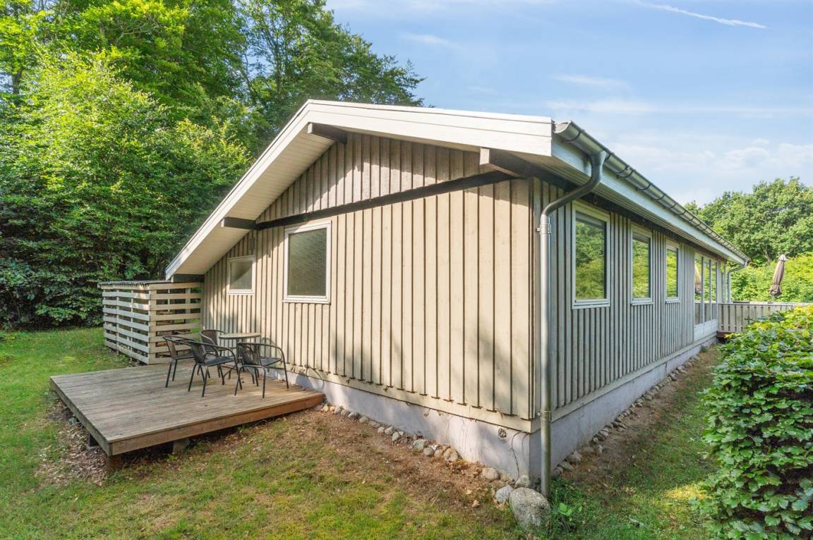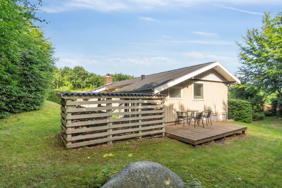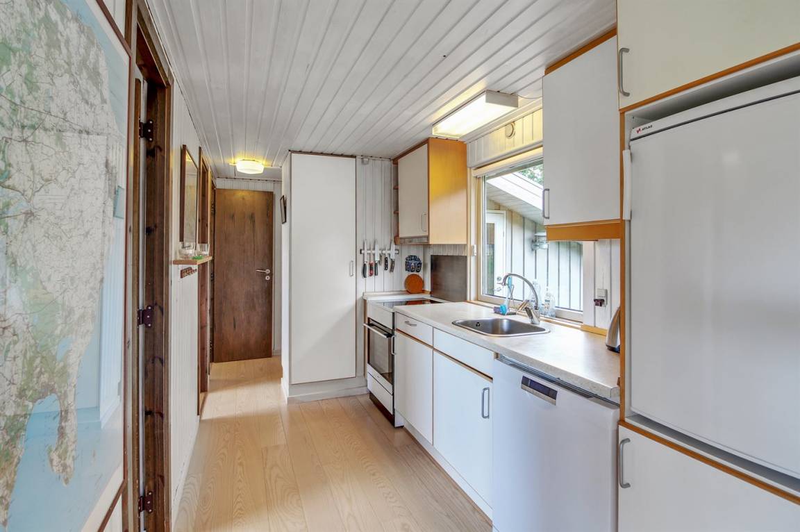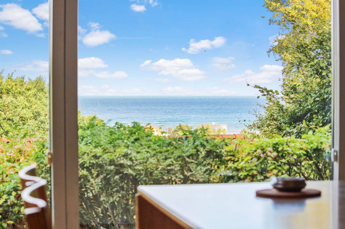 Auf einem leicht hügeligen Grundstück mit Meerblick – sowohl vom Haus als auch vom Grundstück aus, liegt dieses gepflegte Ferienhaus. Das Haus hat ein großes, hell eingerichtetes Wohnzimmer. Zum Haus gehören eine westlich ausgerichtete Holzterrasse mit direktem Zugang vom Wohnzimmer sowie eine östlich ausgerichtete Holzterrasse.