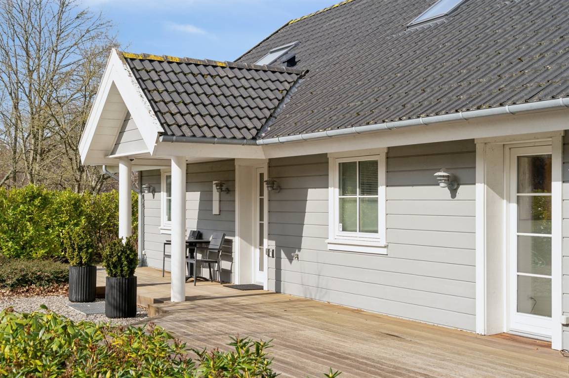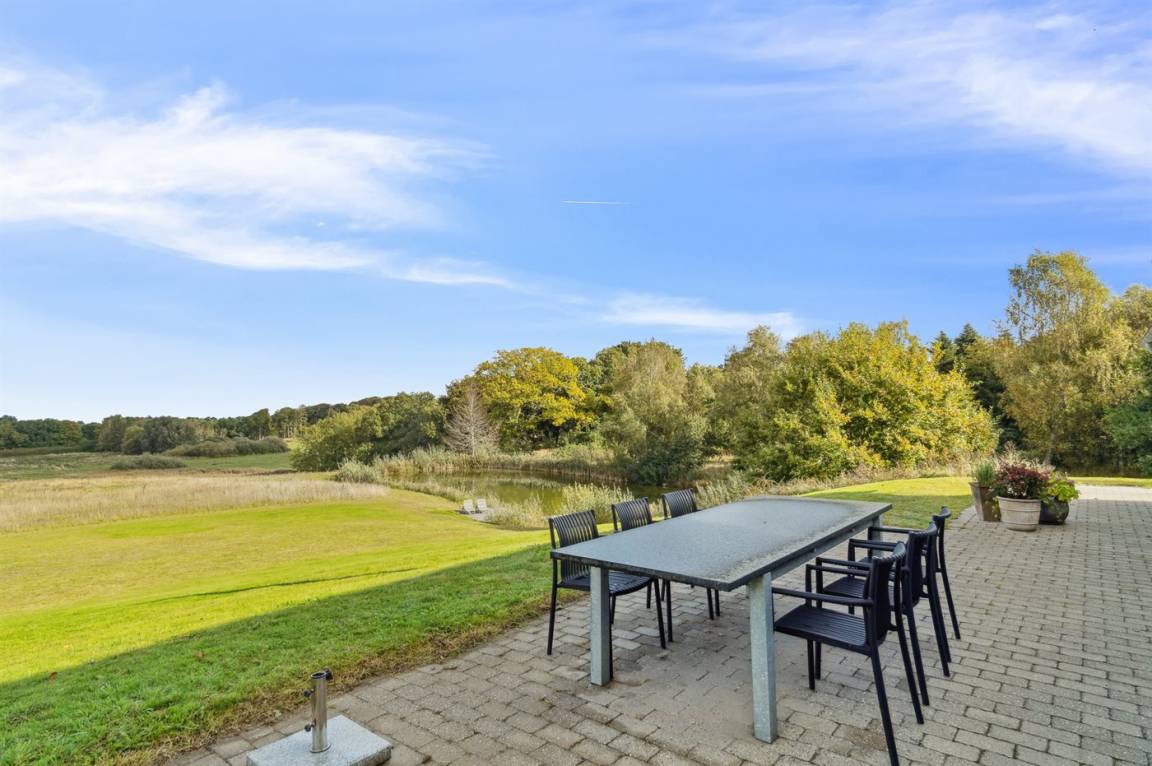 Zu beiden Häusern gehören schöne Terrassenbereiche und das eine Haus bietet zudem einen hervorragenden Blick auf den Kattegat und das sehr große Grundstück mit einer Größe von fast 40.000 m². und einen eigenen See.
