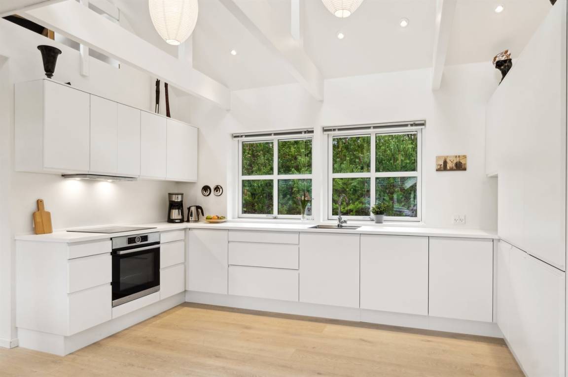 Hier handelt es sich um ein erstklassiges Anwesen der Sonderklasse. Das Anwesen liegt in absolut fantastischer und malerischer Umgebung außerhalb des Ferienorts Fjellerup - an der Nordküste von Djursland und nur etwa 500 Meter von der wunderschönen Küste am Kattegat entfernt. Vom Anwesen aus besteht die Möglichkeit, direkt ans Wasser zu gehen, und die schöne Umgebung und der gute Sandstrand sind definitiv einen Besuch wert.
