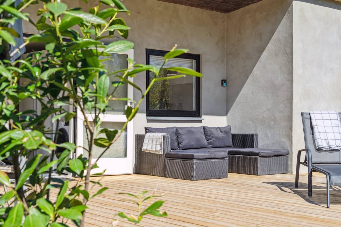 DraußenDie Ferienunterkunft liegt auf einem 728 m² großen Gartengrundstück. Die Entfernung zum Meer beträgt 450 m. Die nächste Einkaufsmöglichkeit liegt 800 m entfernt. Es steht ein offenes Terrassenareal zur Verfügung. Außerdem gibt es überdachte Terrasse. Außendusche. Es steht ein Grill zur Verfügung. Es ist ein Ladestecker für Elektroautos installiert. Ladestecker Typ 2. Mit einer Ladeleistung von 11 kW. Parkplatz auf dem Grundstück.