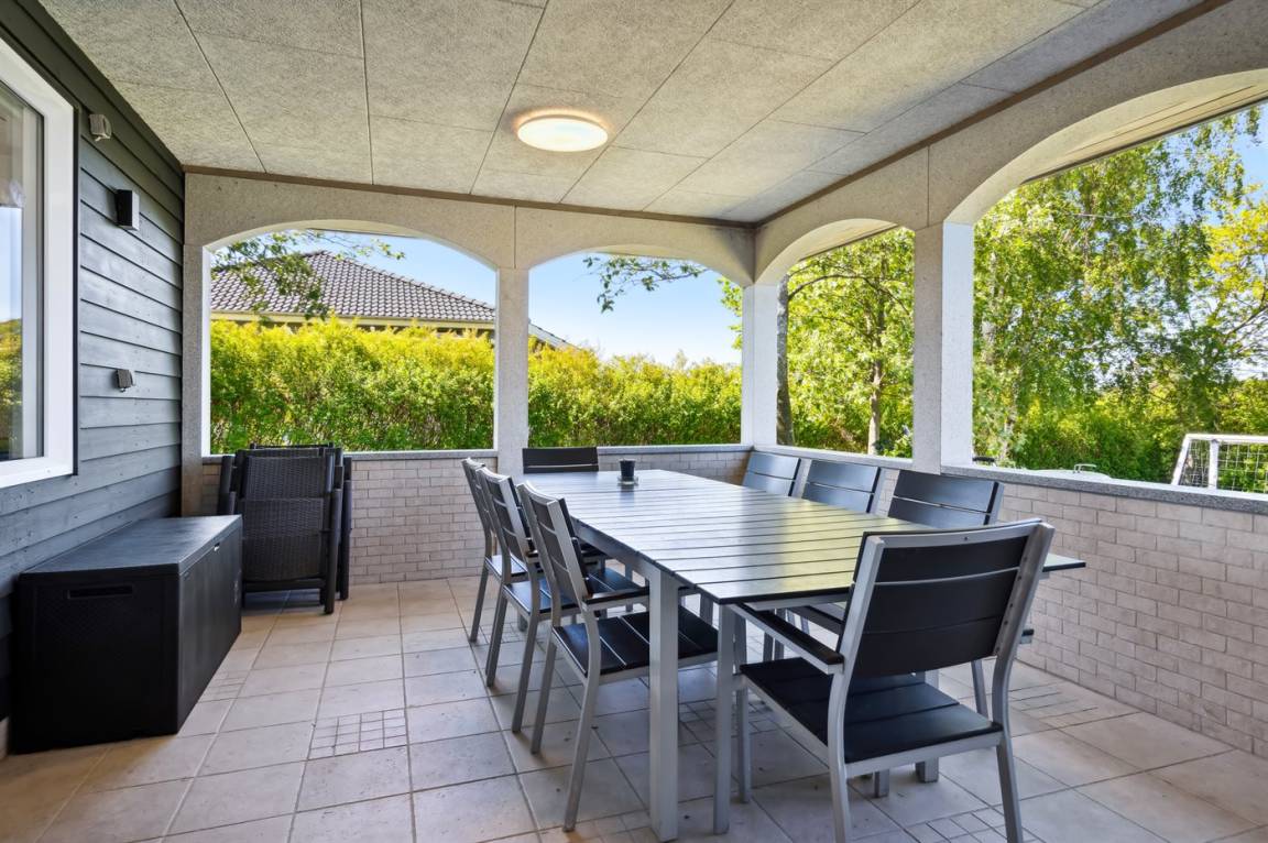 Das Haus verfügt außerdem über einige feine Terrassen, die teilweise überdacht sind und von denen aus die Sonne und die herrliche Umgebung in hohem Maße genossen werden können. Es gibt Spielanlagen für kleinere Kinder auf dem großen und kinderfreundlichen Rasen, auf dem viel Platz zum Toben ist.