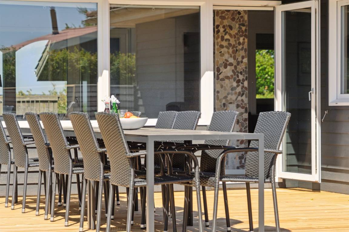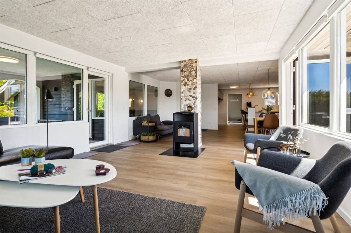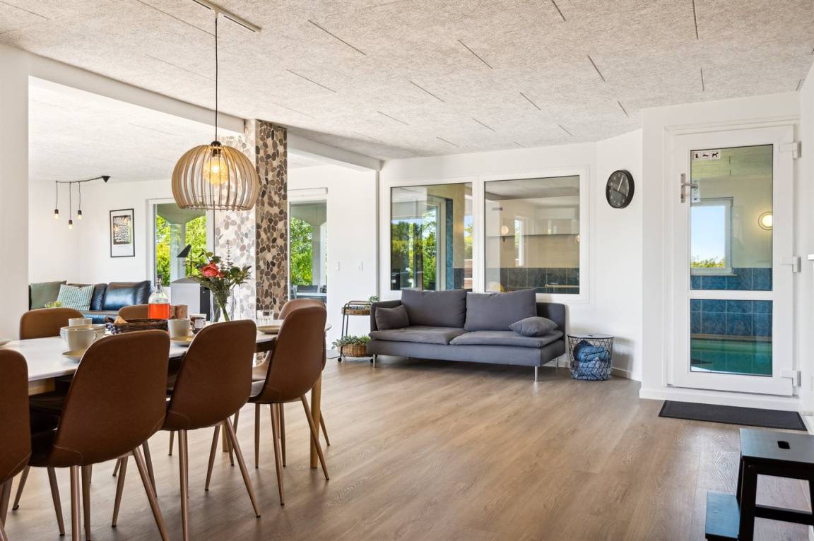 Das Ferienhaus wurde 2024 vollständig renoviert und präsentiert sich daher in perfektem Zustand. Das Haus ist gut ausgestattet und verfügt über einen guten Grundriss, weshalb es sich ideal für zwei Familien oder einfach eine Familie mit Großeltern eignet - die Möglichkeiten sind vielfältig in diesem Ferienhaus. Neben dem herrlichen Swimmingpool ist das Herzstück des Hauses die große Küche/Esszimmer und Wohnzimmer in einem. Hier ist es besonders schön, wenn die Familie sich zum gemütlichen Beisammensein trifft, falls das Wetter draußen nicht mitspielt. Es gibt auch eine Sauna in Verbindung mit dem Swimmingpool.