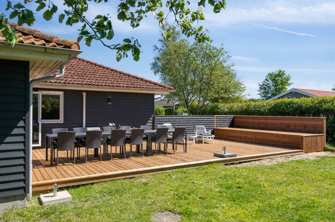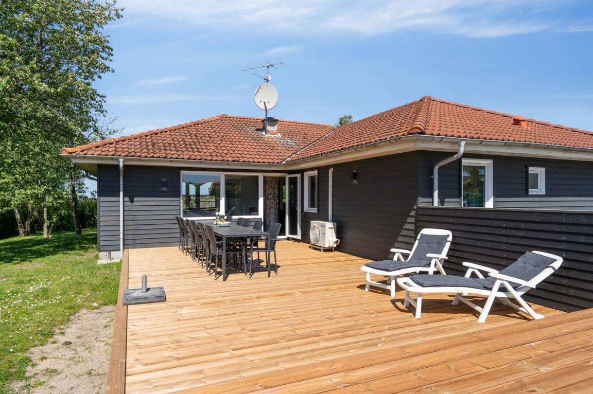 DraußenDie Ferienunterkunft liegt auf einem 1214 m² großen Gartengrundstück. Die Entfernung zum Meer beträgt 850 m. Die nächste Einkaufsmöglichkeit liegt 1500 m entfernt. Es steht ein offenes Terrassenareal zur Verfügung. Außerdem gibt es überdachte Terrasse. Schaukel. Trampolin. Rutsche. Fußballtor.Lagerfeuerstelle. Es steht ein Grill zur Verfügung. Parkplatz auf dem Grundstück.
