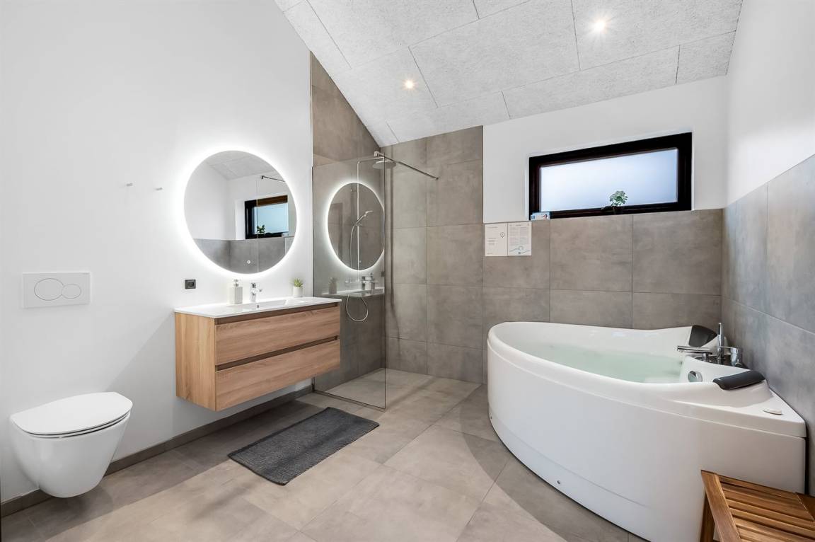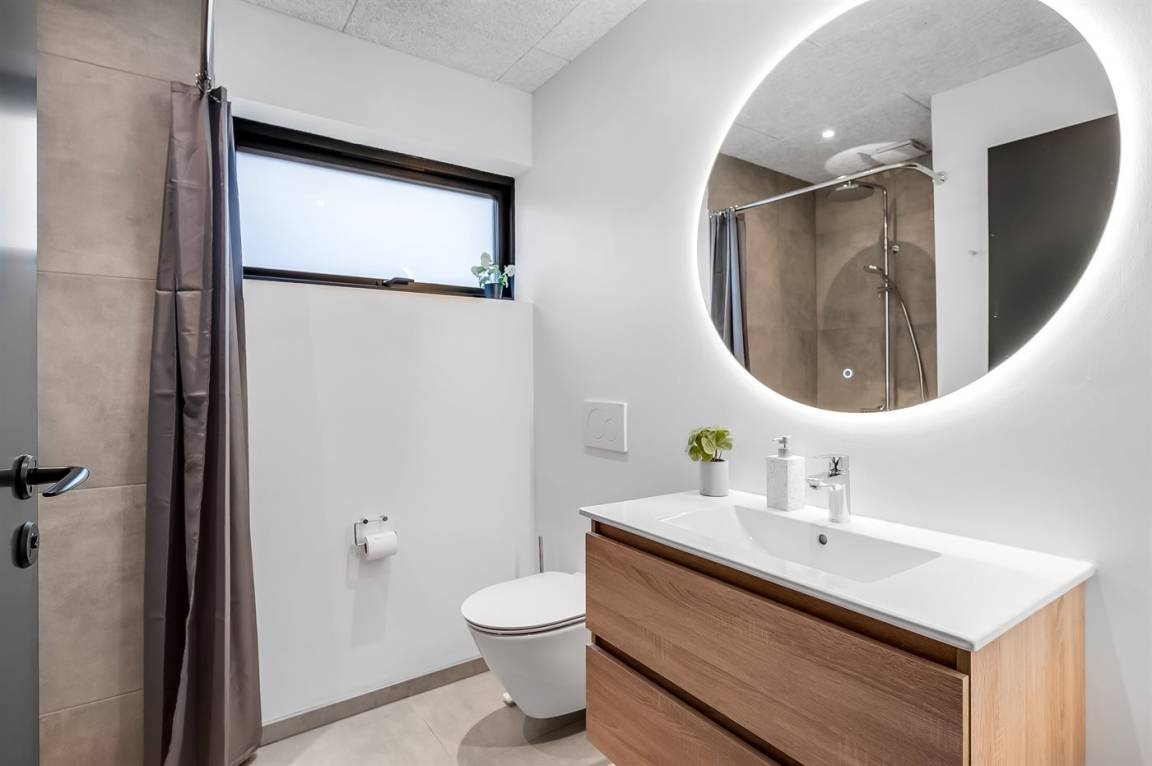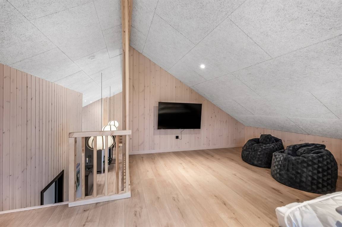 Es stehen zwei separate Familienbereiche zur Verfügung, die sich an den gegenüberliegenden Enden des Hauses befinden - beide mit eigenem Badezimmer. Der große Wohn- und Essbereich mit Küche hat eine angenehme Deckenhöhe und gute Akustik und ist der natürliche Treffpunkt des Hauses. Der Aktivitätsraum ist schallisoliert, sodass du Poolbillard, Dart und Tischtennis spielen kannst, ohne den Rest des Hauses zu stören.