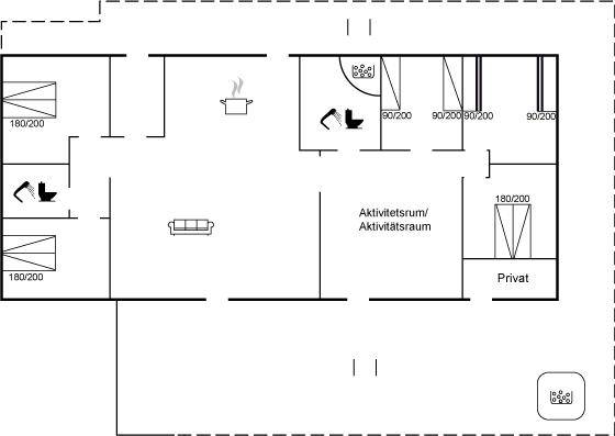 Das Ferienhaus eignet sich für 16 Personen sowie 1 Kleinkind bis zu 3 Jahren. Die Ferienunterkunft hat eine Wohnfläche von 176 m² und wurde 2026 gebaut. Es ist erlaubt 2 Haustiere mitzubringen. Die Ferienunterkunft ist mit energiefreundlicher Luft-Wasser- Wärmepumpe ausgestattet. Fußbodenheizung in allen Räumen. Die Ferienunterkunft ist mit Waschmaschine ausgestattet. Wäschetrockner. Tiefkühlmöglichkeit mit 80 Liter Nutzinhalt. Für die jüngsten Feriengäste ist 1 Kinderhochstuhl vorhanden.