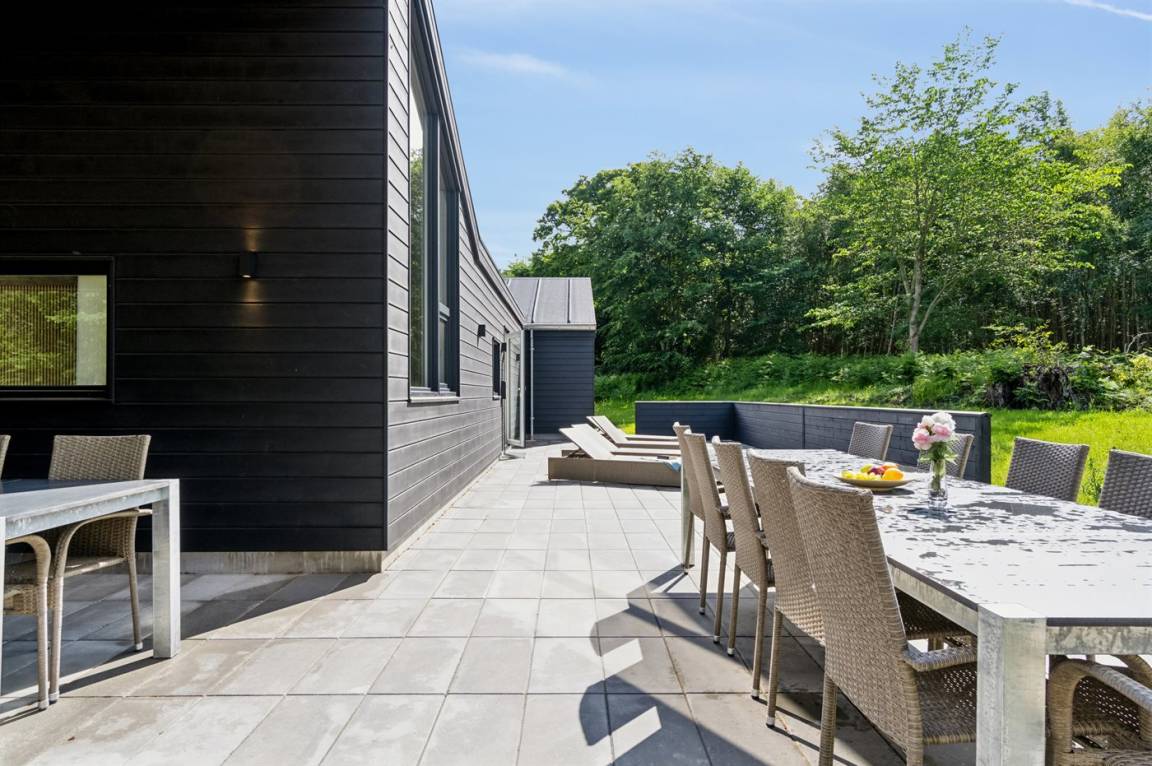 DraußenDie Ferienunterkunft liegt auf einem 2700 m² großen Naturgrundstück. Die Entfernung zum Meer beträgt 500 m. Die nächste Einkaufsmöglichkeit liegt 500 m entfernt. Es steht ein geschlossenes Terrassenareal zur Verfügung. Schaukel. Sandkasten. Trampolin. Spielturm. Rutsche.Es beteht die Möglichkeit das Essen in der Außenküche zuzubereiten. Es steht ein Grill zur Verfügung. Es ist ein Ladestecker für Elektroautos installiert. Ladestecker Typ 2. Mit einer Ladeleistung von 11 kW. Parkplatz auf dem Grundstück.