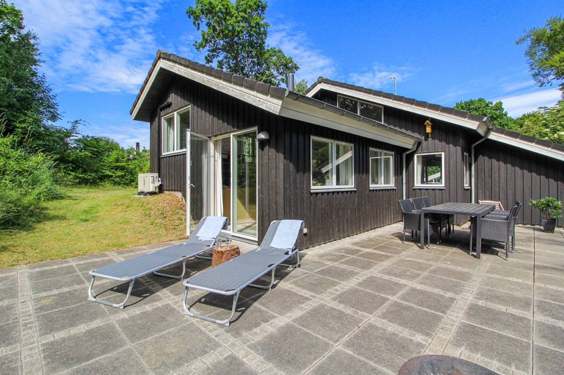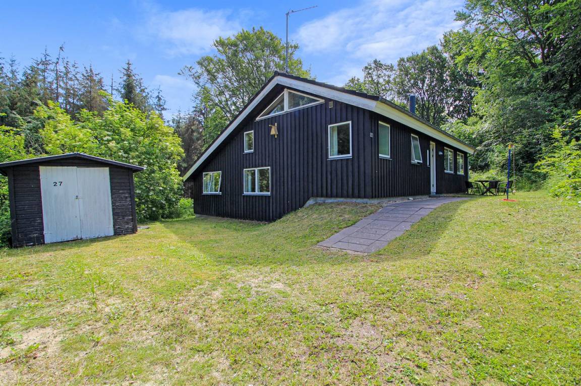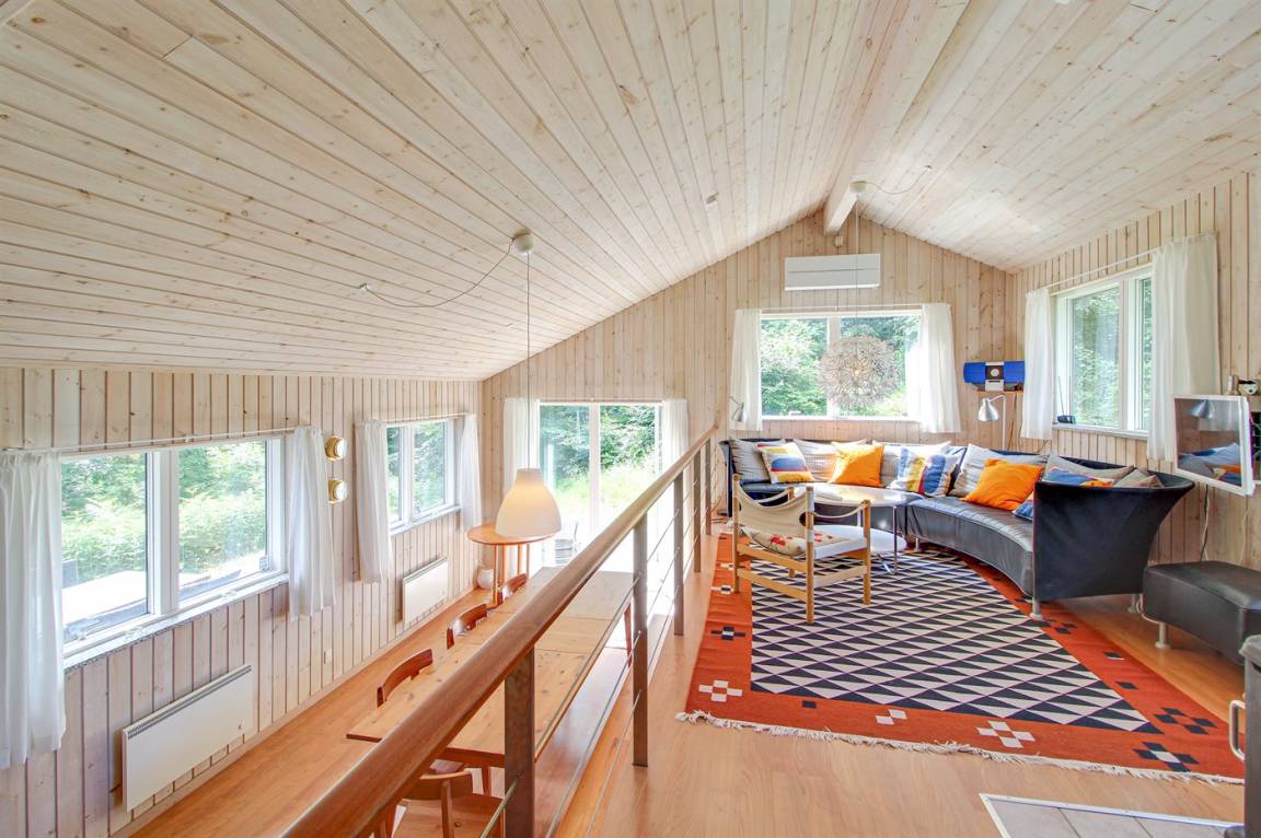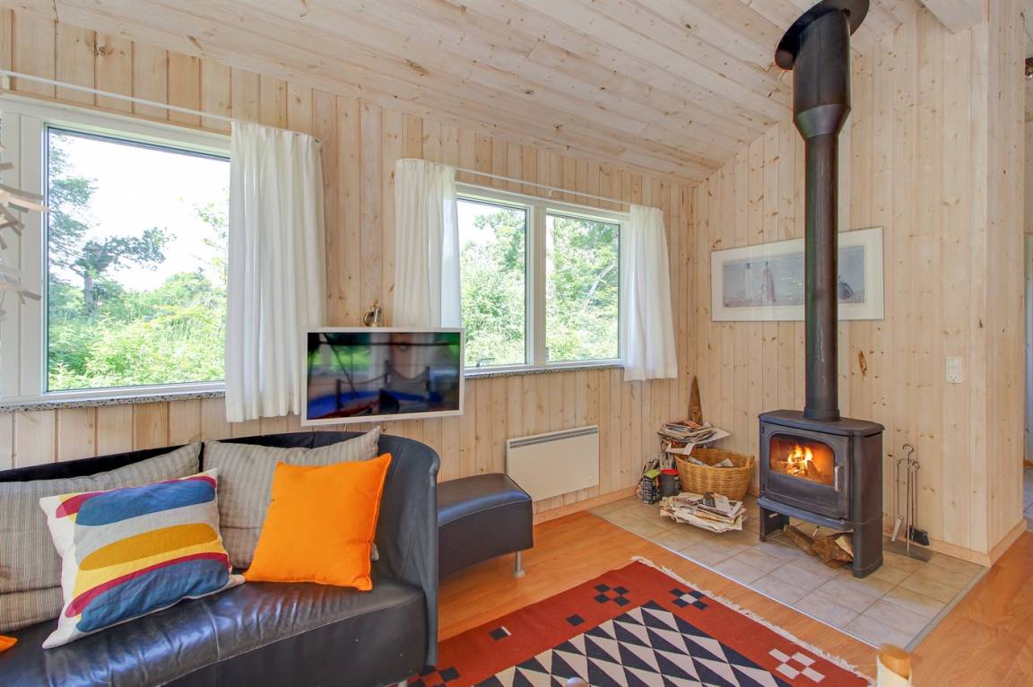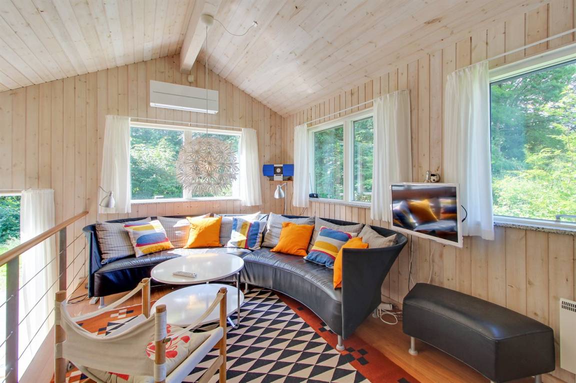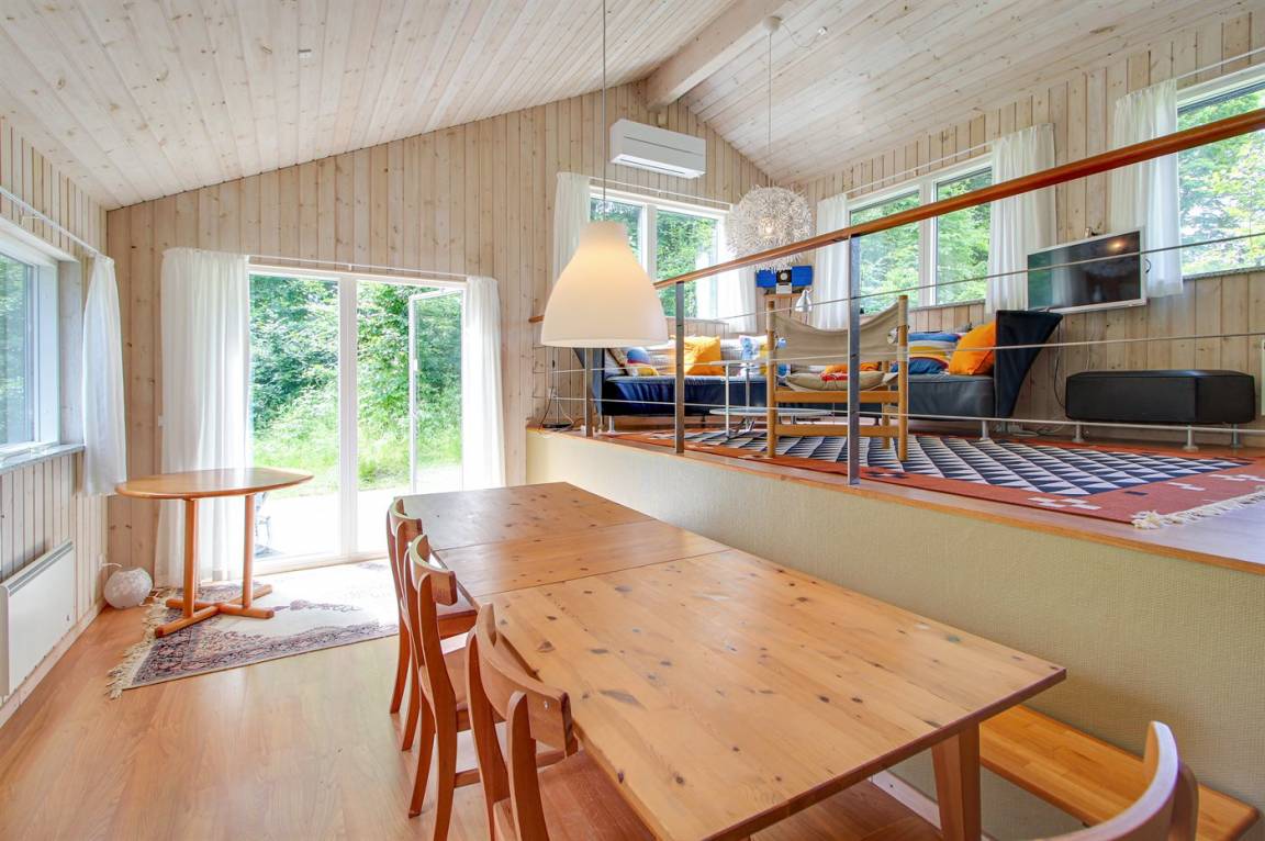 Ferienhaus mit viel Platz, inmitten malerischer Natur auf einem ungestörten, von hohen Bäumen umgebenen Grundstück gelegen. Das Haus liegt in einer Sackgasse am Rande der Ferienhaussiedlung. Über den Hügel hinter dem Haus gelangt man direkt in ein großes Waldgebiet. Ein guter Badestrand befindet sich ebenfalls in der Nähe.