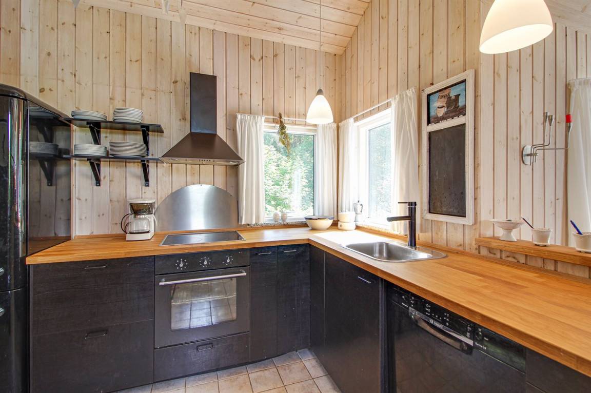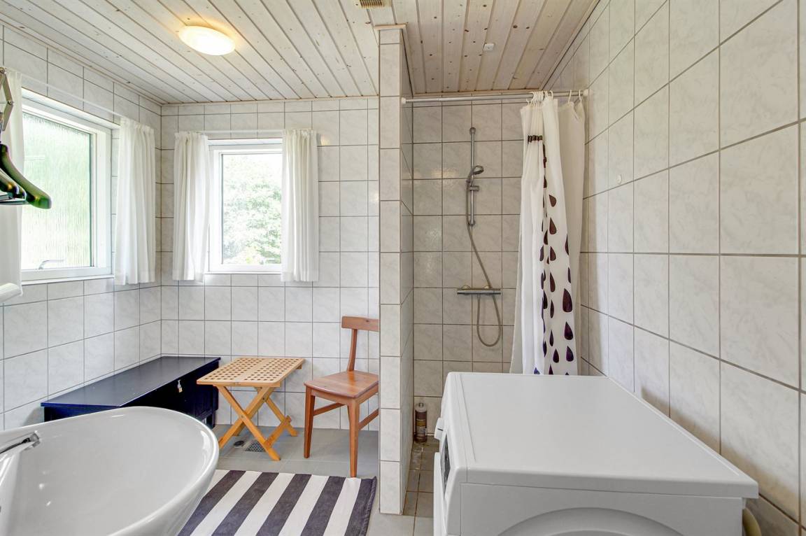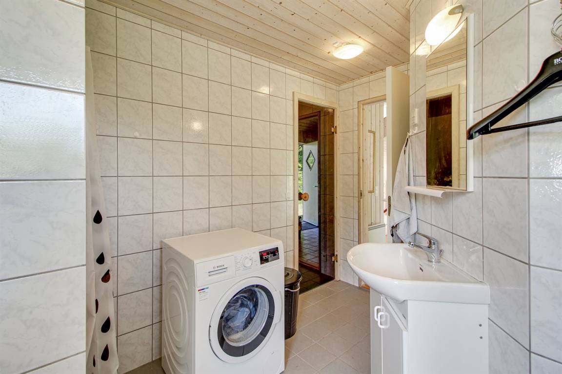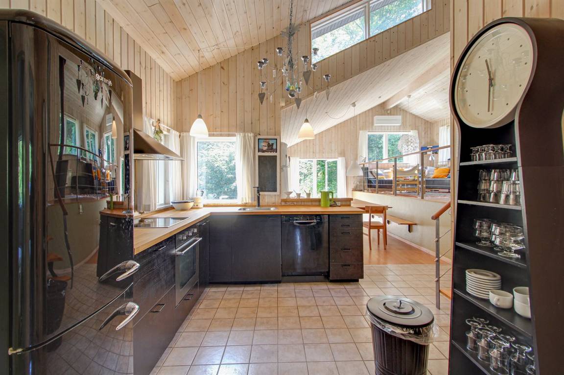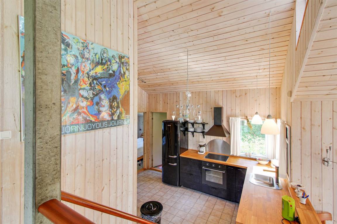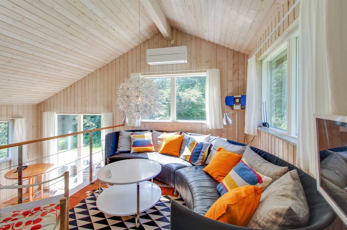Ferienhaus mit viel Platz, inmitten malerischer Natur auf einem ungestörten, von hohen Bäumen umgebenen Grundstück gelegen. Das Haus liegt in einer Sackgasse am Rande der Ferienhaussiedlung. Über den Hügel hinter dem Haus gelangt man direkt in ein großes Waldgebiet. Ein guter Badestrand befindet sich ebenfalls in der Nähe.