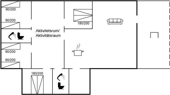 SchlafverhältnisseDie Schlafplätze verteilen sich auf 4 Schlafräume. 4 Schlafplätze in Doppelbetten. 4 Schlafplätze in Einzelbetten. 2 Schlafplätze auf Matratzen. 2 von diesen Schlafplätzen befinden sich im offenen Obergeschoss.