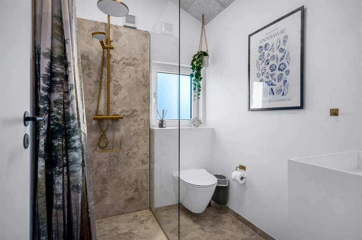 WC und BadEs gibt 4 Badezimmer mit Duschnische und 3 Toiletten. Fußbodenheizung in 4 Badezimmern. Es steht eine Sauna zur Verfügung in der Sie sich so richtig entspannen können.